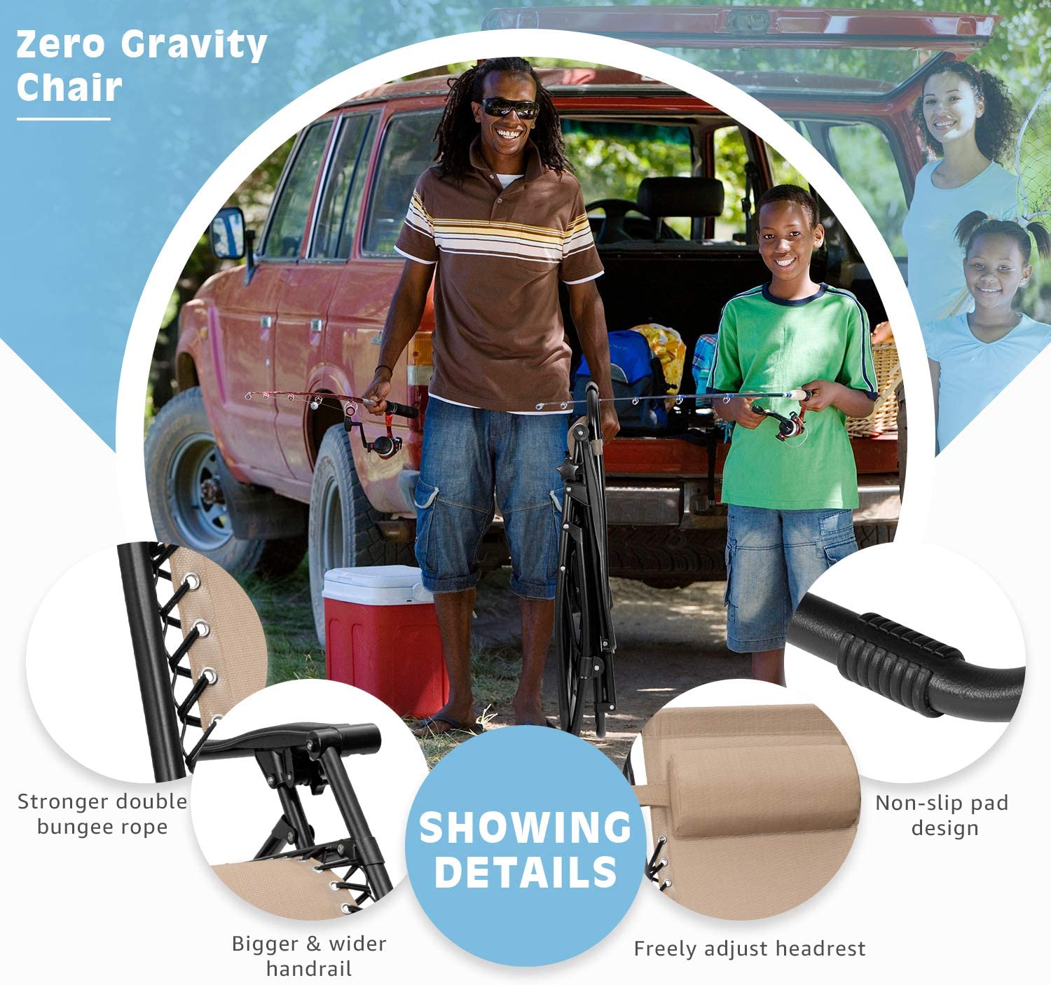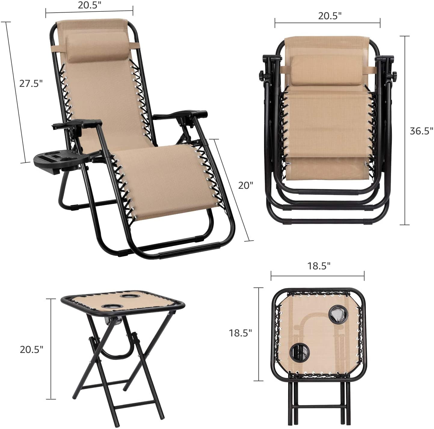 Vineego 3 Pieces Zero Gravity Chair Patio Foldable Chaise Lounge Chairs 2 Beach Chairs and Table with Cup Holders,Beige