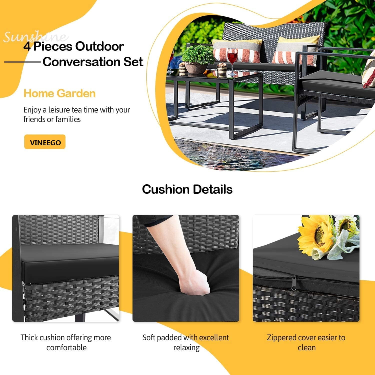 Vineego Outdoor Patio Furniture series is a product launched after investigating similar products on the market and absorbing various advantages. We have increased the functions that quality anti-uv PE rattan, which can withstand all kinds of weather changes. With a strong steel frame coated with anti-rust paint, the product is more durable. A rich variety of products allows you to freely match, whether it is in the garden, terrace, swimming pool, backyard, our products are excellent choices for you and your family. Choose Vineego to enjoy your leisure time.