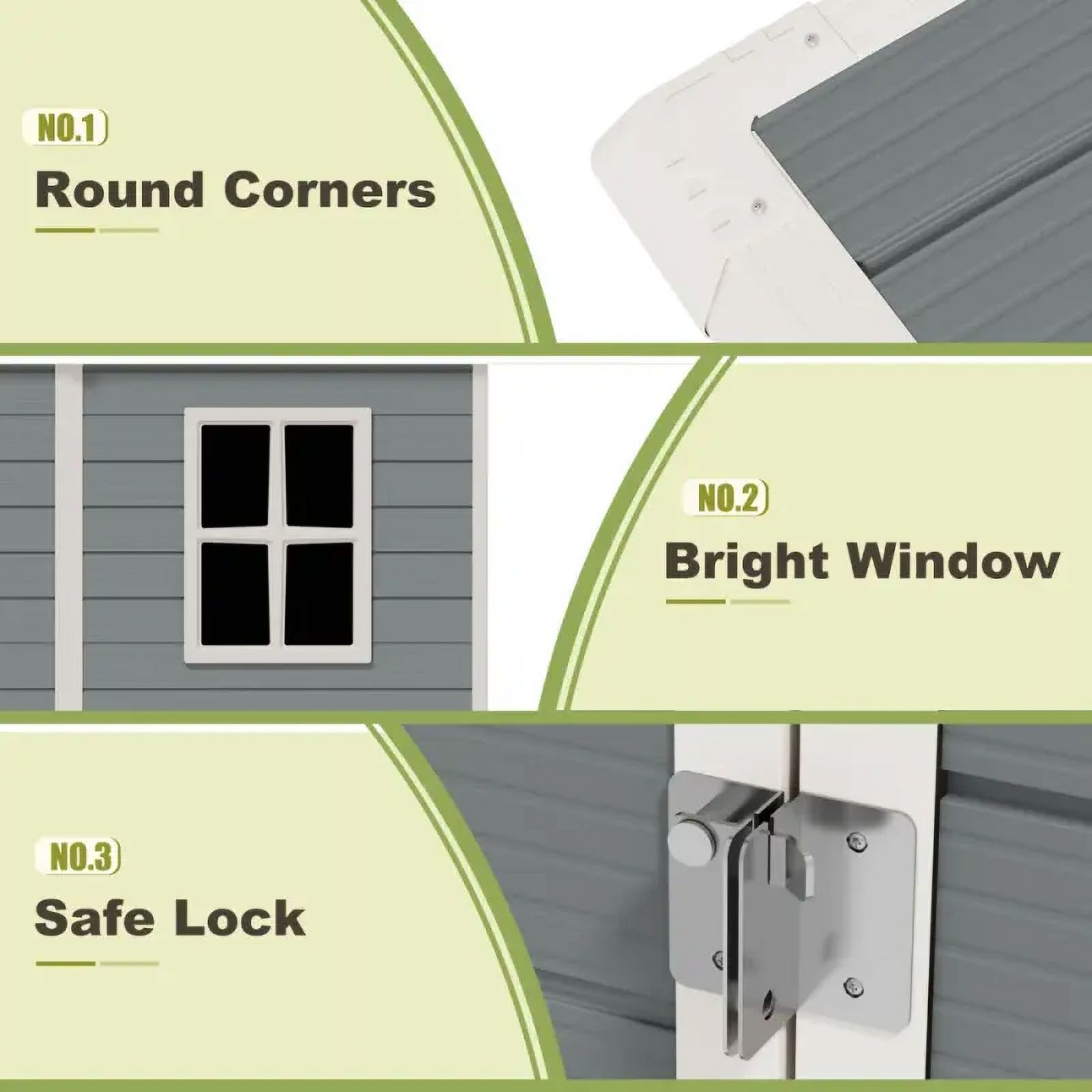 Vineego outdoor storage shed is robust and stable with advanced durability made of high quality materials and can be used all year round. This storage shed is perfect for your outdoor storage needs. Tool shed is perfect for storing lawn mowers, shovels, outdoor chairs, bicycles, children’s toys and more. You can also buy storage racks to hang in your shed to store your metal tools, escalators, and more. The garden shed has a fixed window and vent for easy air circulation. This outdoor shed is ideal for gardens, lawns and backyards, giving you the perfect storage space