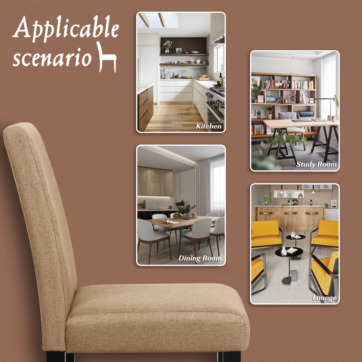 Vineego dining chair has an elegant styling design, with soft polyester padding and thick sponge filling, providing a comfortable sitting experience. Specially crafted black wooden legs to prevent cavities, the plastic bottom of the legs protect your floor and stay away from scratches. These chairs are very suitable for the dining room, kitchen, living room, or other indoor environments.