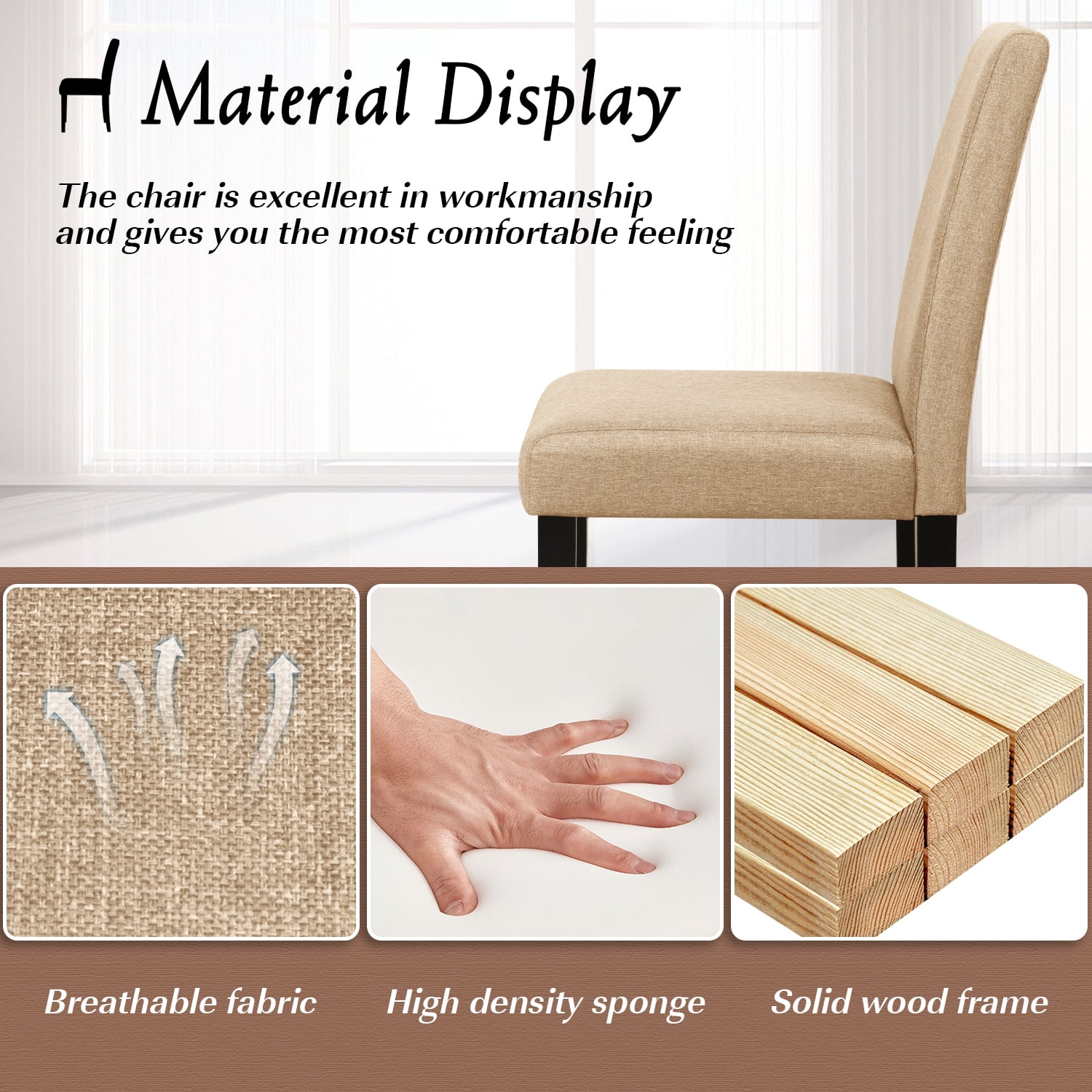 Vineego Dining Chairs Urban Style Fabric Parson Chairs Kitchen Living Room Armless Side Chair with Solid Wood Legs Set of 4 (Beige)