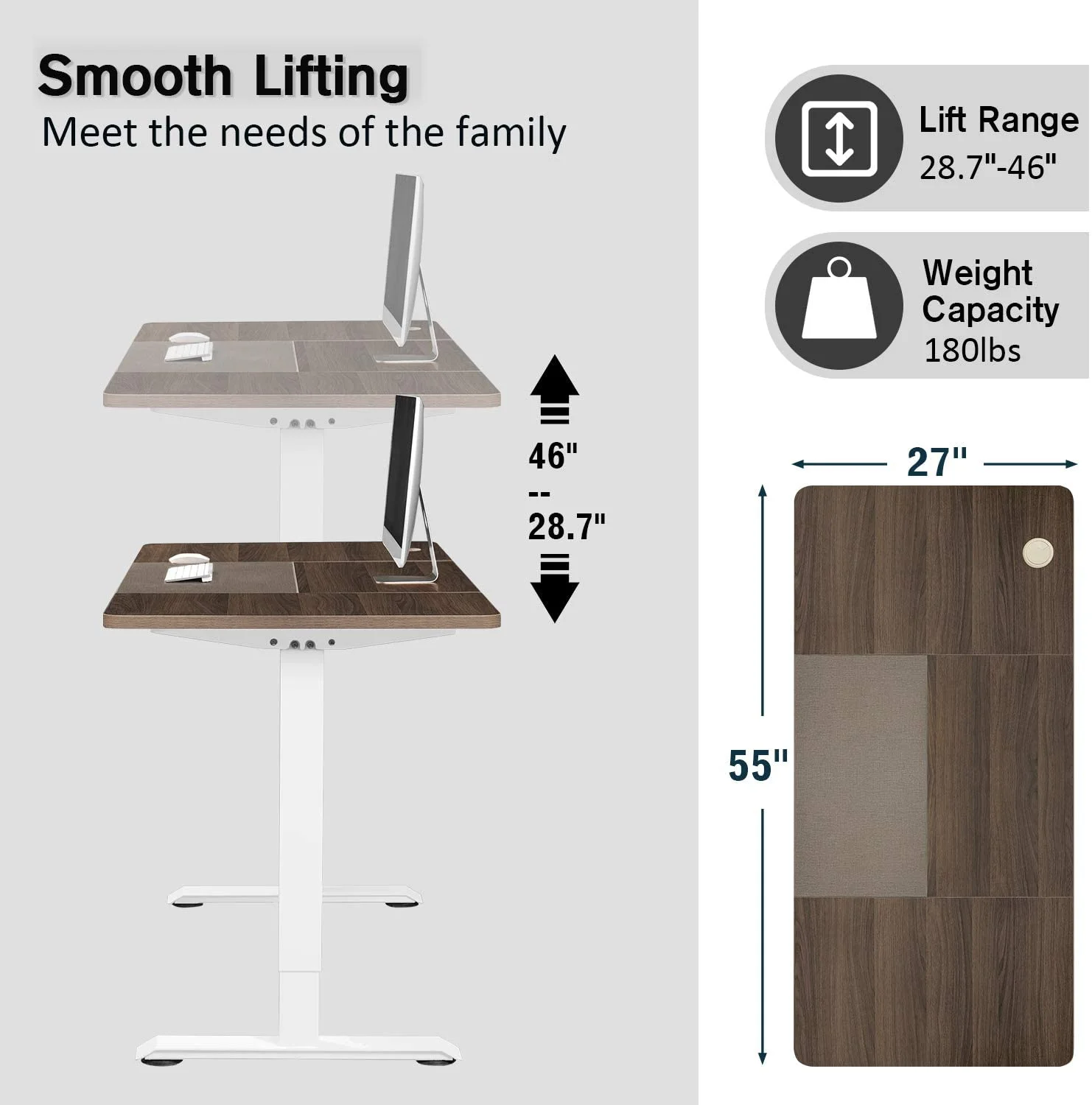 Vineego Electric Standing Desk Height Adjustable Office Desk with 55” x 27.5” Tabletop Home Office Workstation, Walnut Finish