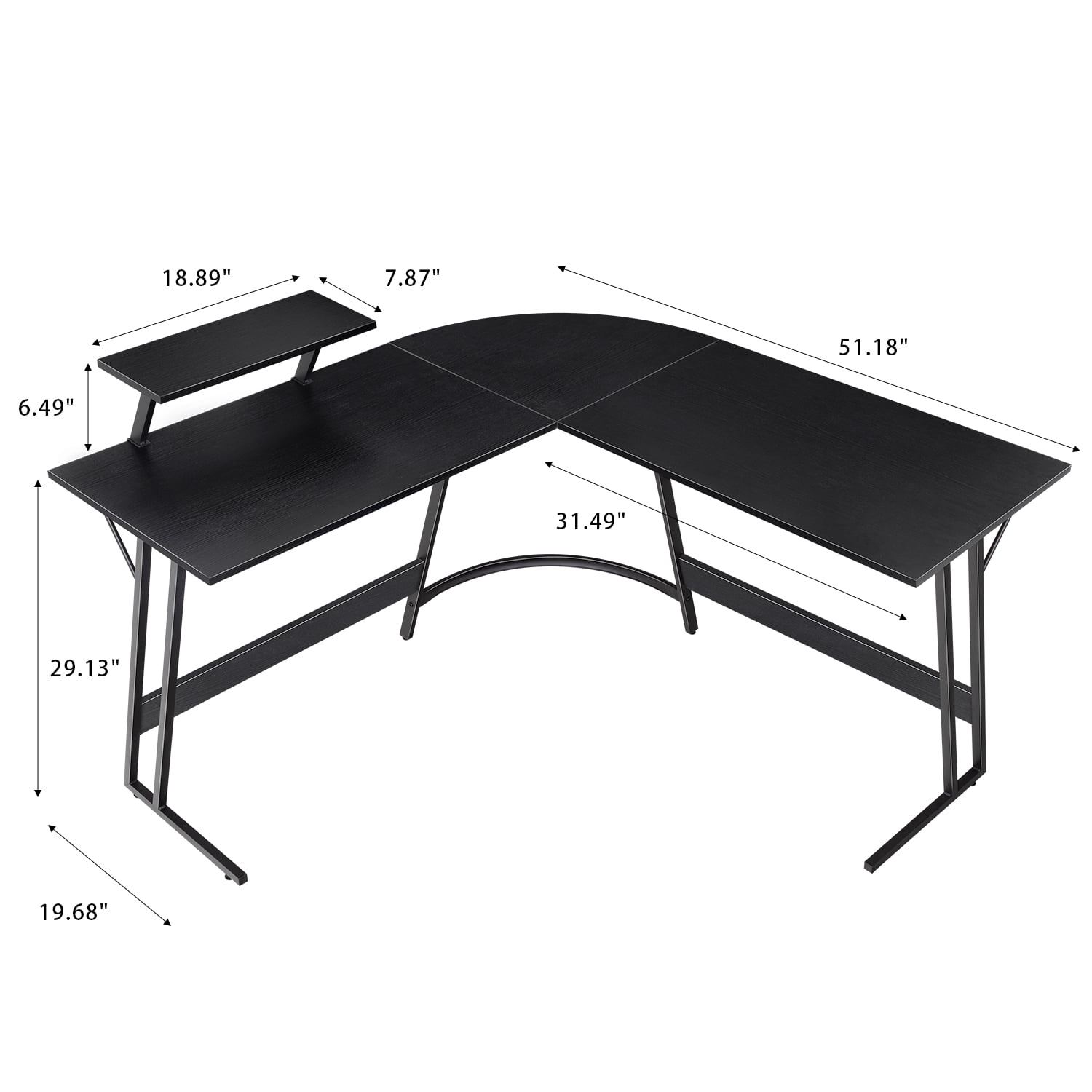 Effectively improve space utilization: The large L-shaped desktop can place various office and leisure items. The corner design allows you to choose the position of the table more freely, saving more space. There is enough space at the bottom of the table for the legs to rest or place the computer case. Customize your exclusive office space: The movable extra small table can be fixed anywhere on the table, it is perfect for placing a laptop or other objects. You can even buy two tables and splice them into a private workbench that is exclusive to you. Its versatility makes it very suitable for learning, office, and even playing games. Reliable quality and environmental protection: The table uses a high-quality metal frame, and the triangular support makes the table more stable. MDF board is easy to clean and more environmentally friendly and durable. The adjustable design on the legs avoids any instability of the table. Classic and simple appearance: A variety of colors for your choice, you can choose vintage rustic brown, modern and fashion black, and bright and stylish white. Maybe you can try to buy tables of different colors to form a unique contrasting color design. Easy to install: Each box of products is equipped with a complete hardware package and instructions. Even if you are a novice installer, you can follow the instructions on the manual and spend 1015 minutes to complete it easily and happily. Specifications: Single Desk dimensions: 31.49″ (L) x 19.68″ (W) x 29.13″ (H) Movable desk dimensions: 18.89″ (L) x 7.87″ (W) x 6.49″ (H) Maximum Weight Capacity: 220 LBS Product Weight: 31 lbs Color: Black Material: Metal frame and MDF board Package Included: A New Office Desk Hardware Fitting Bag x 1 Instructions x 1