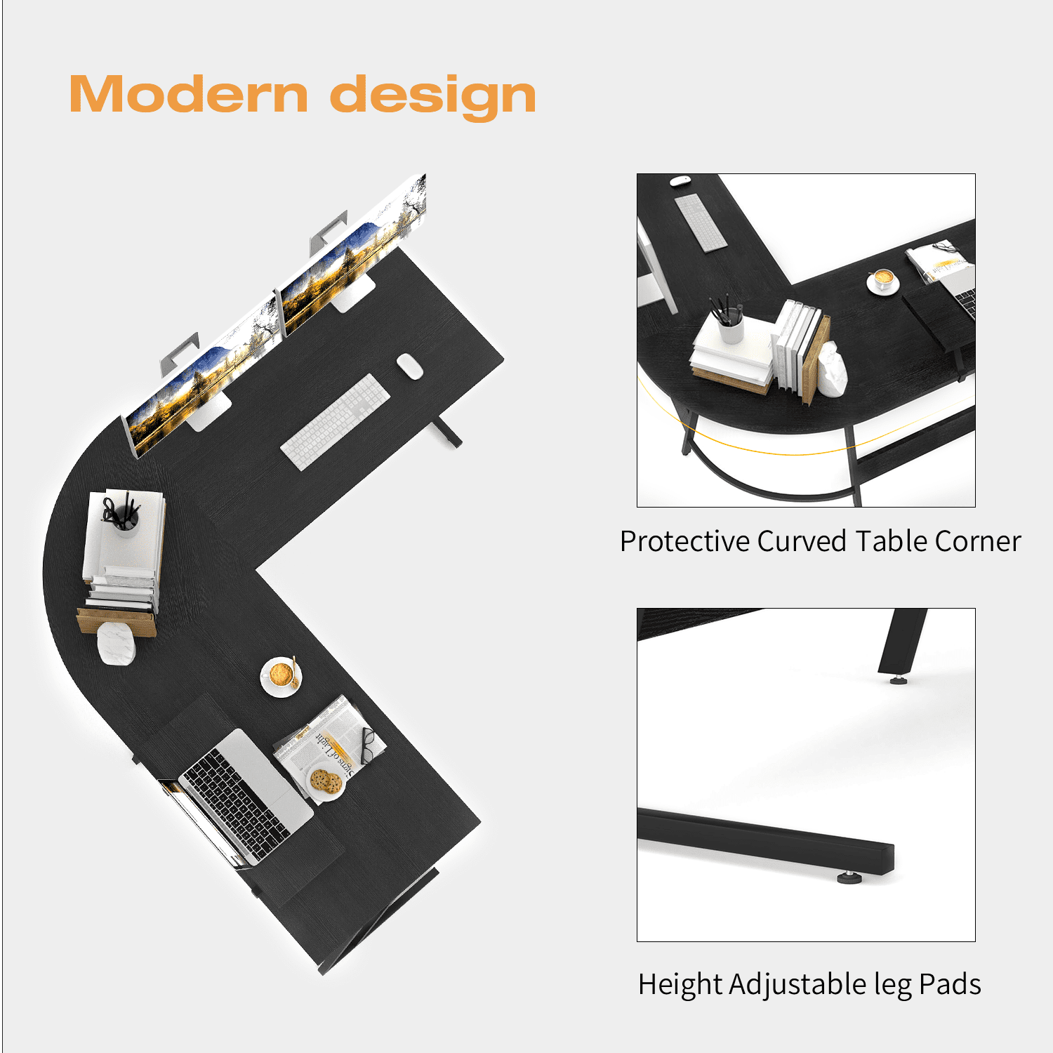 Vineego L-Shaped Computer Desk Modern Corner Desk Home Office Writing Sturdy Workstation with Movable Table, Black