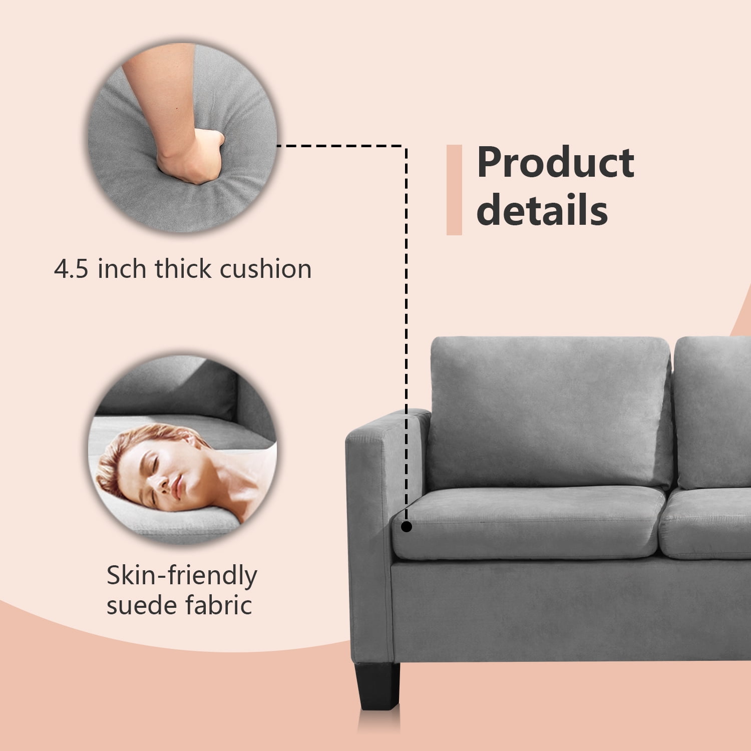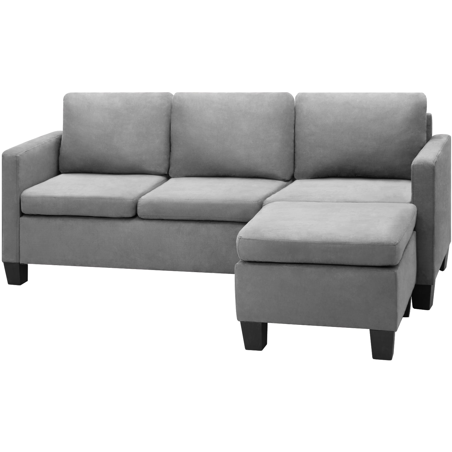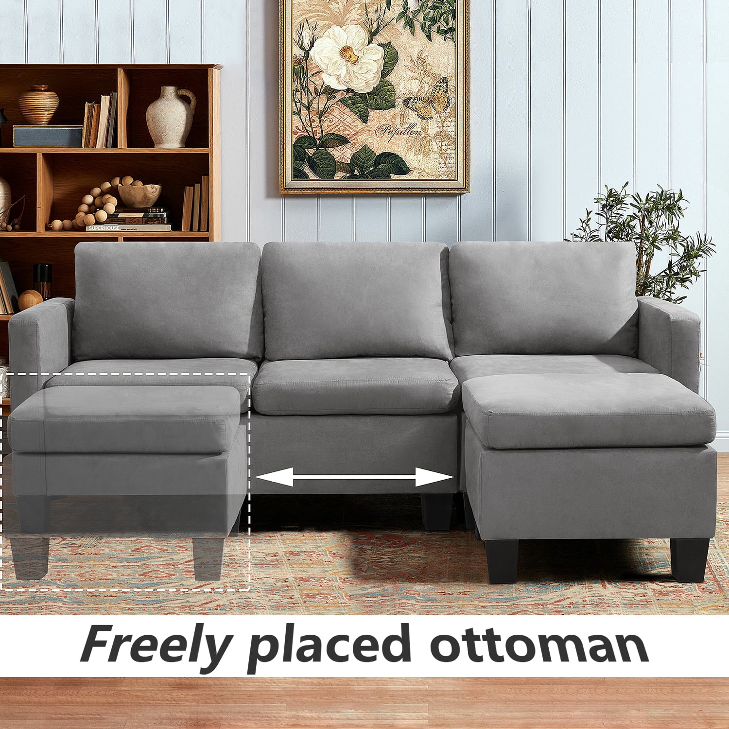 Vineego L-shaped Sofa Suede Fabric Convertible Sectional Sofa with Reversible Chaise 3-Seat Modern Living Room Sofa with Ottoman,Gray