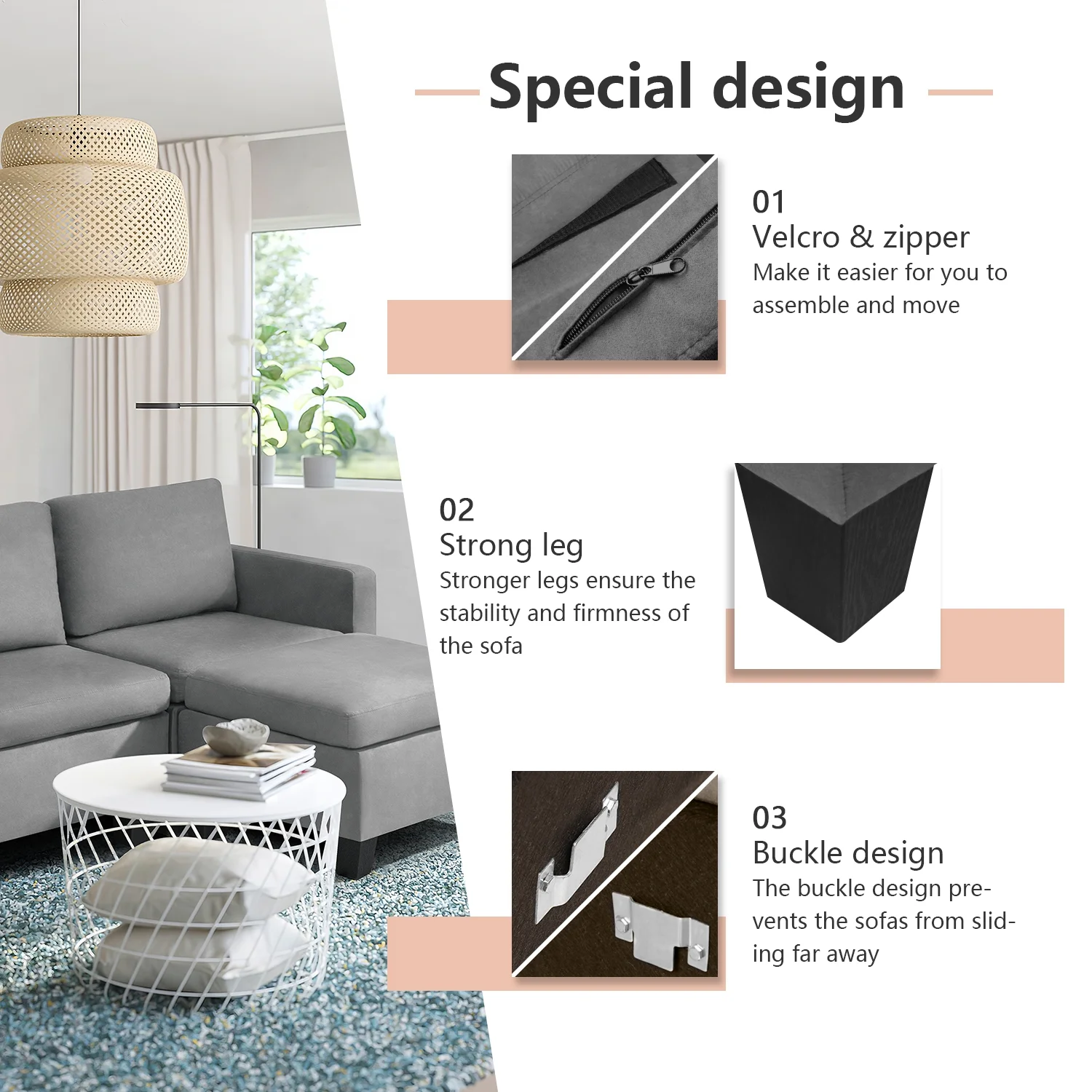 Vineego suede fabric sectional sofa is very suitable for small and medium-sized space, whether it is a dormitory, apartment or office area, it is an excellent choice for you. The classic design easily matches various decoration styles, making your space look more exquisite and elegant. You can also adjust the position of the ottoman according to your needs. Choose him to choose a better life.