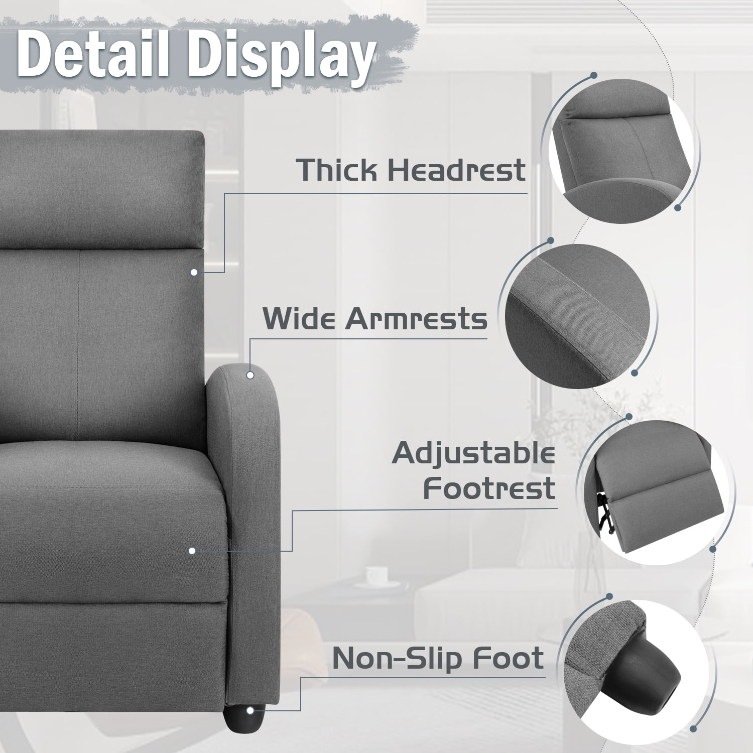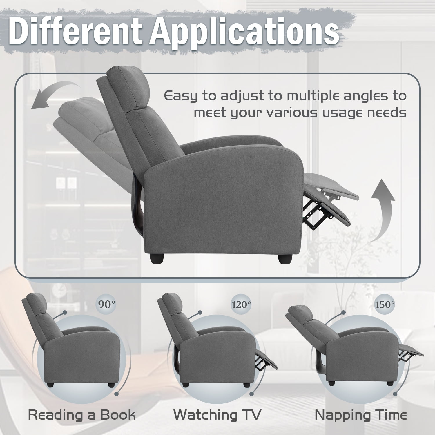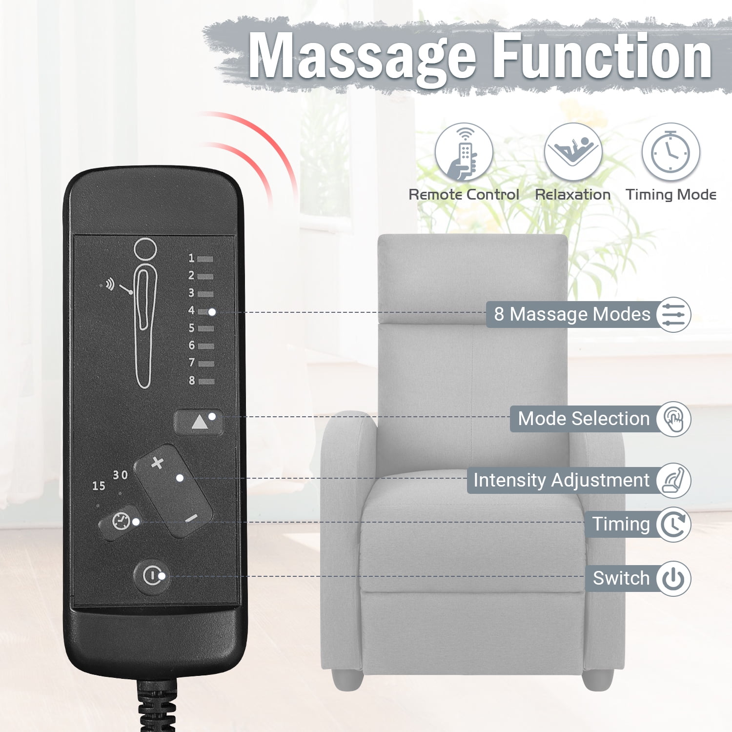 Vineego Massage Sofa Chair,Adjustable Fabric Recliner Home Theater Seating with Padded Backrest and Thick Seat Cushion ,Gray