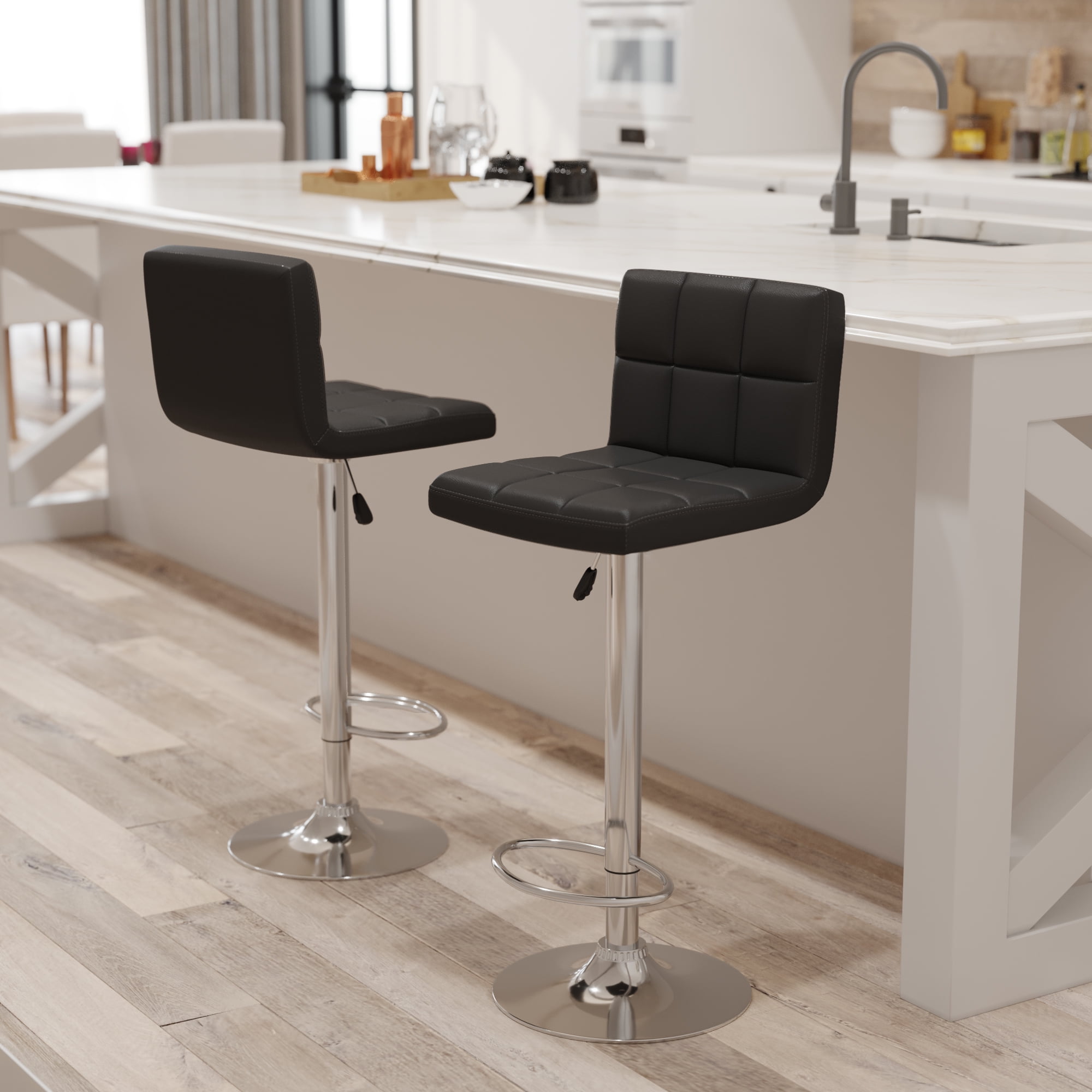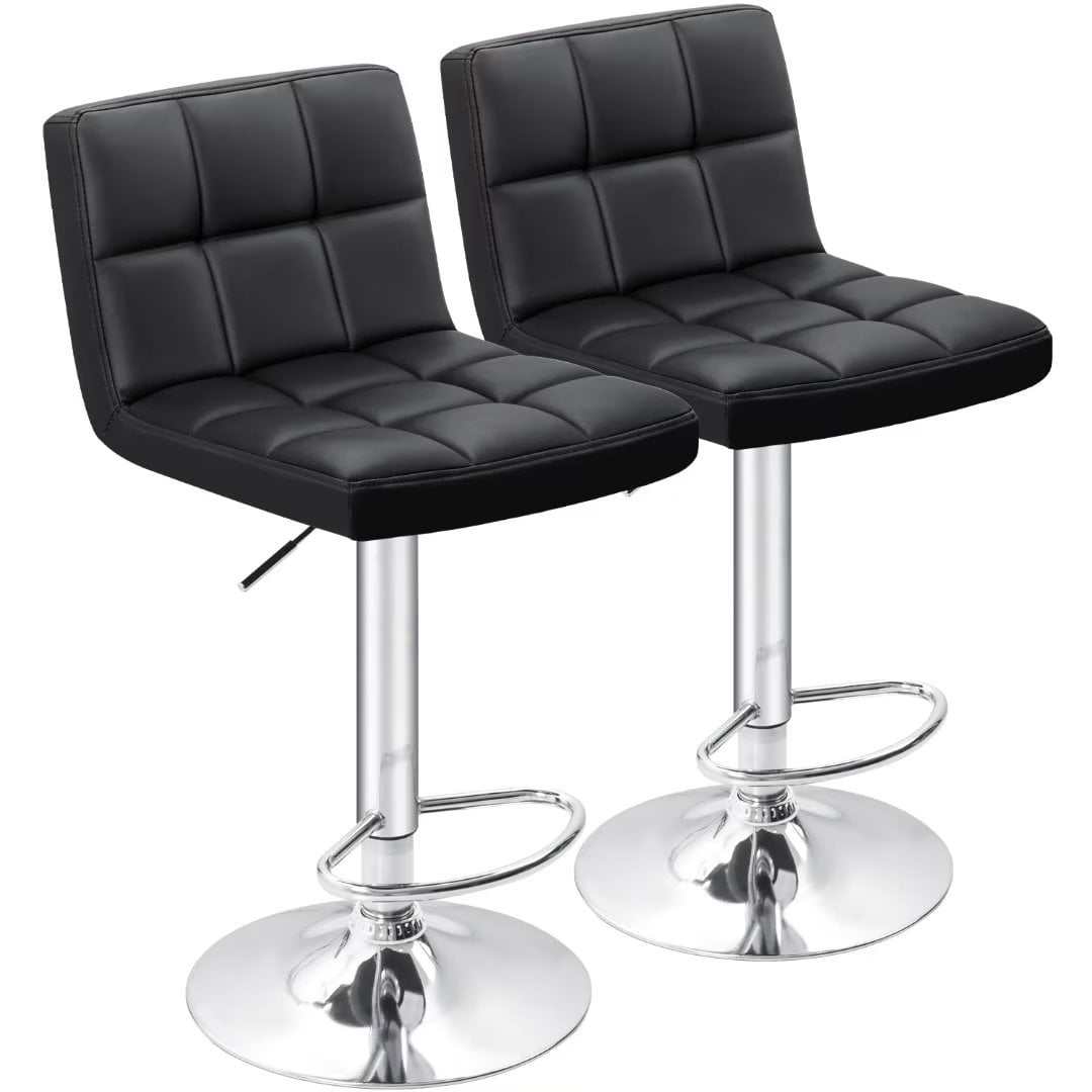Vineego Modern Square PU Leather Swivel Adjustable Bar Stool, Set of 2, Bar Stool for Kitchen Counter,Black