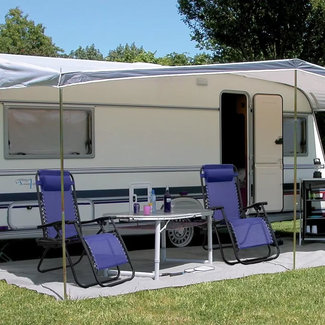 Vineego two-piece zero-gravity lounge chair will bring you pleasant leisure time, it is made of high-quality steel and Textilene fabric, sturdy and comfortable. You can easily adjust the angle of the lounge chair through the plum lock, as if the weightless sitting experience allows you to release the body pressure and relieve the sense of fatigue. In addition, he is foldable, does not take up much space, it is easy to carry, you can take him to anywhere.
