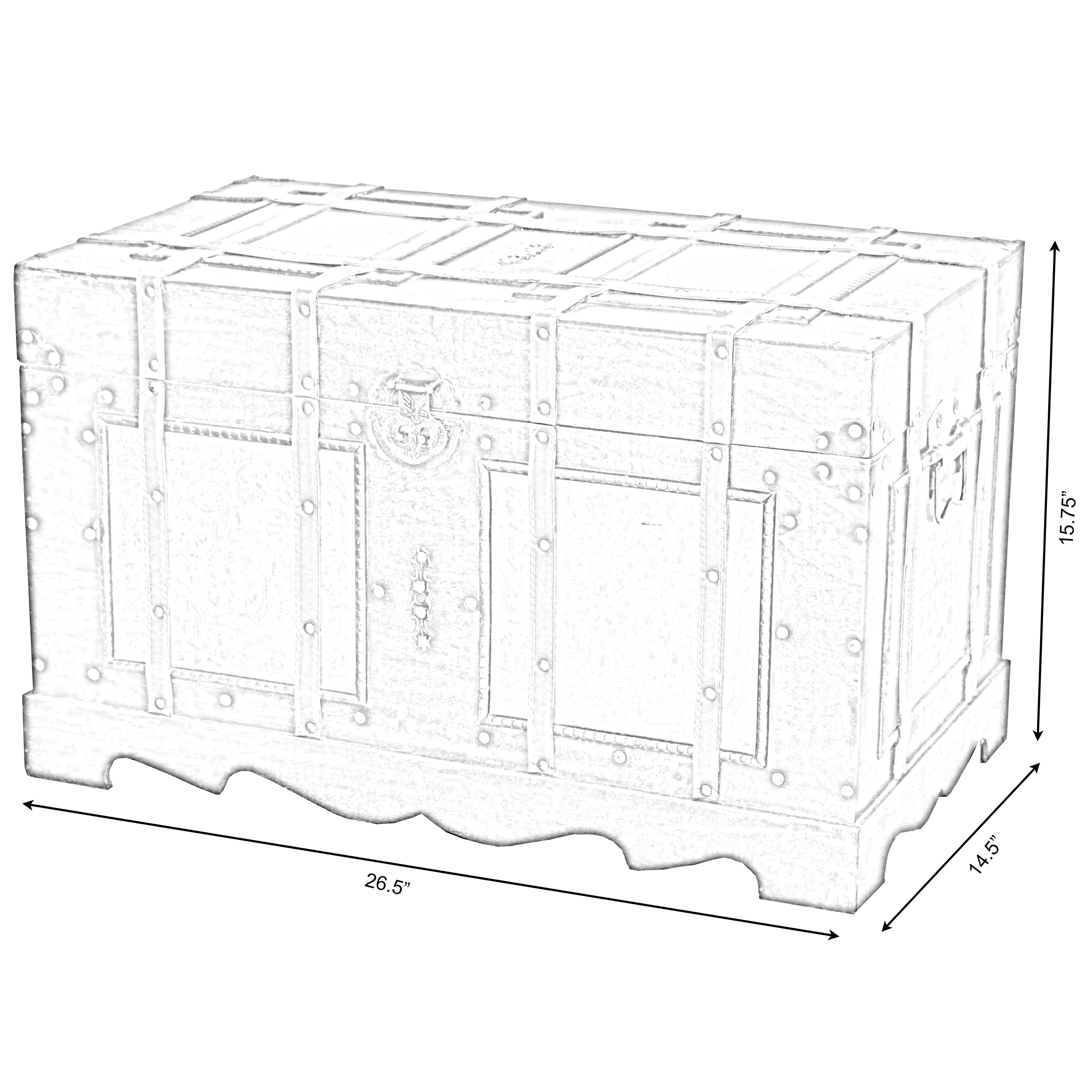 Antique Style Steamer Trunk Size: 26″ x 14.5″ x 15.8″, Fully lined with fabric Decorative trunk that is great for storage and decoration The trunk features to put a paddle lock Large antique style wooden trunk Old Fashioned hardware adds to antique look Our warm and welcoming steamer trunk brings back days of old time. Remember how excited you are when you were a little kid to look into your grandma’s old chest, our decorative trunks will bring back those memories and help you create some new ones too. Our hope chest boxes are all handcrafted and tailored to enhance the existing decor of any room in the home. Great to use for your very own treasure chest!