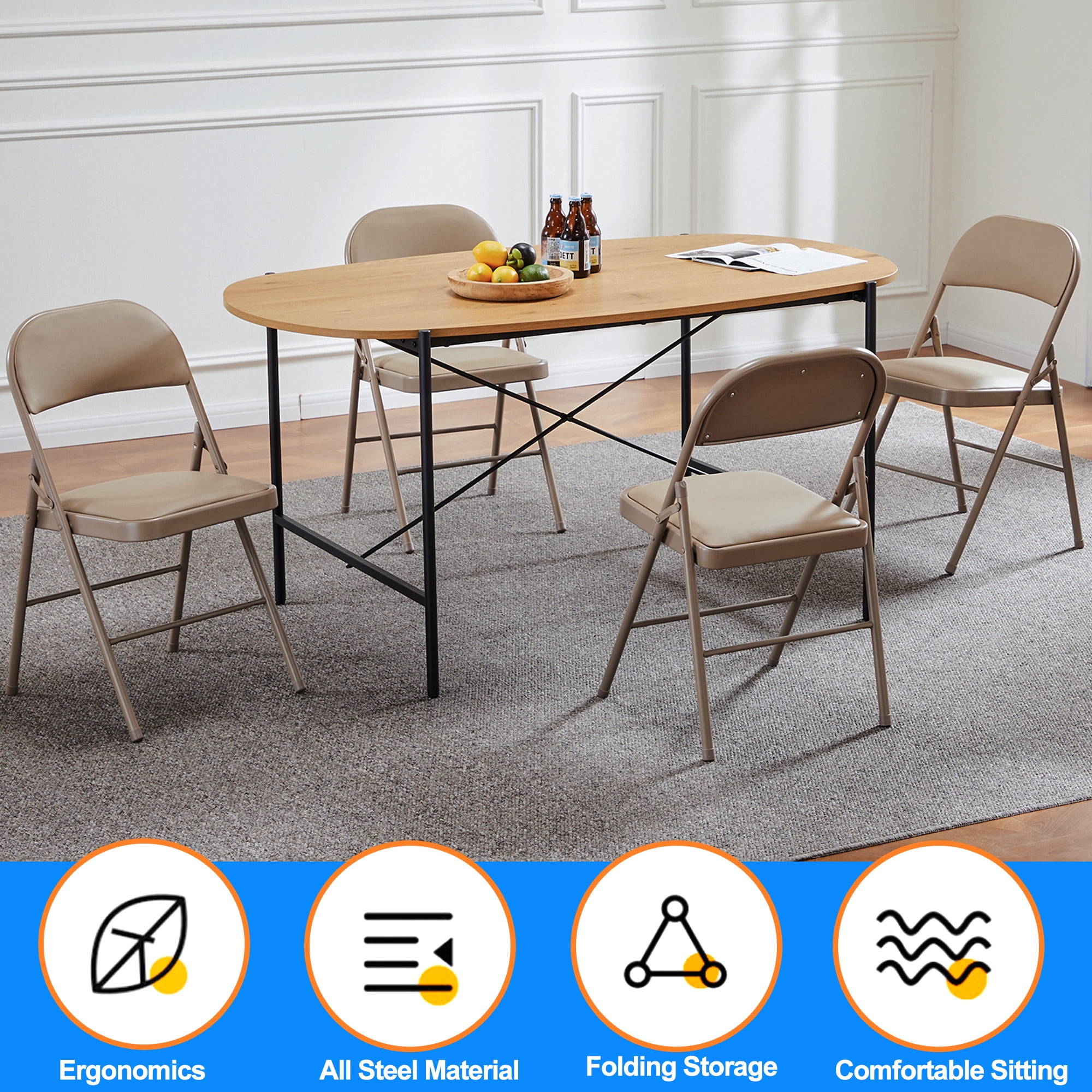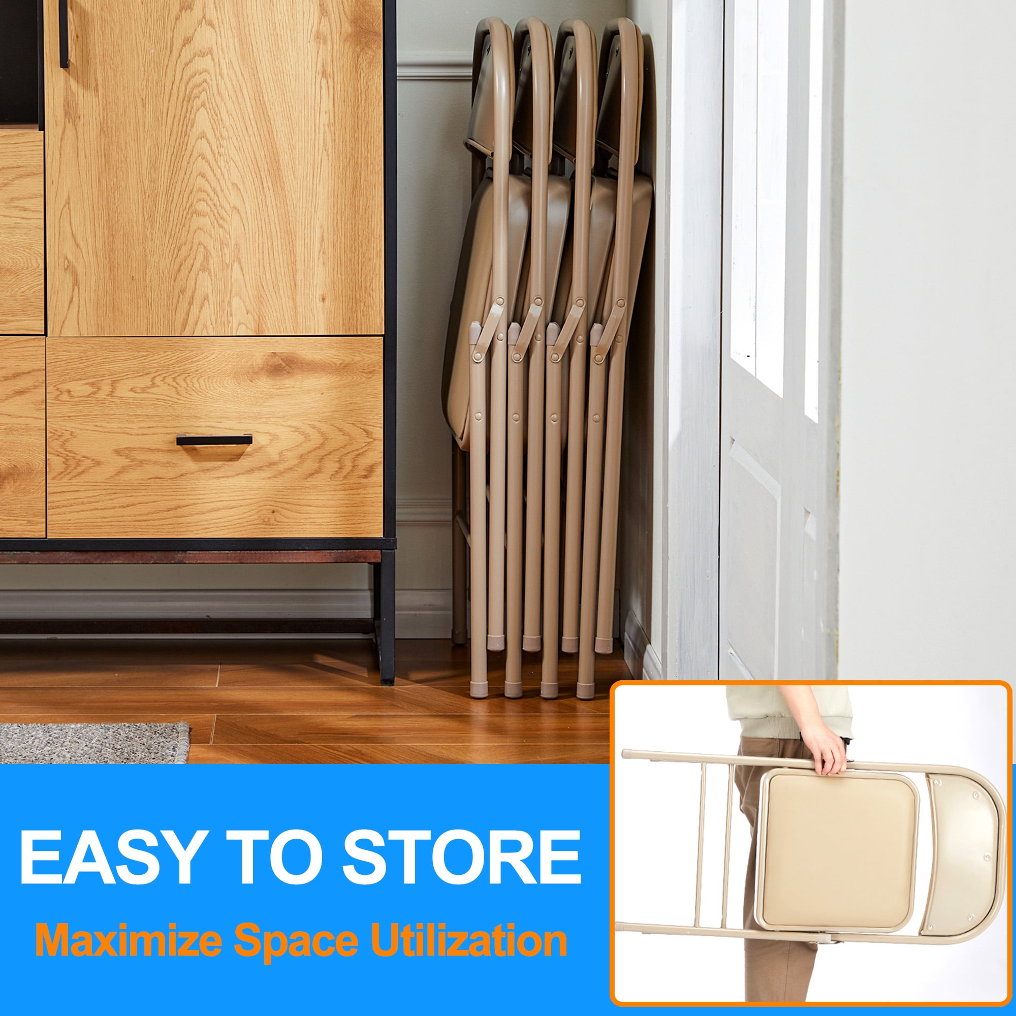 Vinyl Padded Folding Chair (4 Pack), khaki