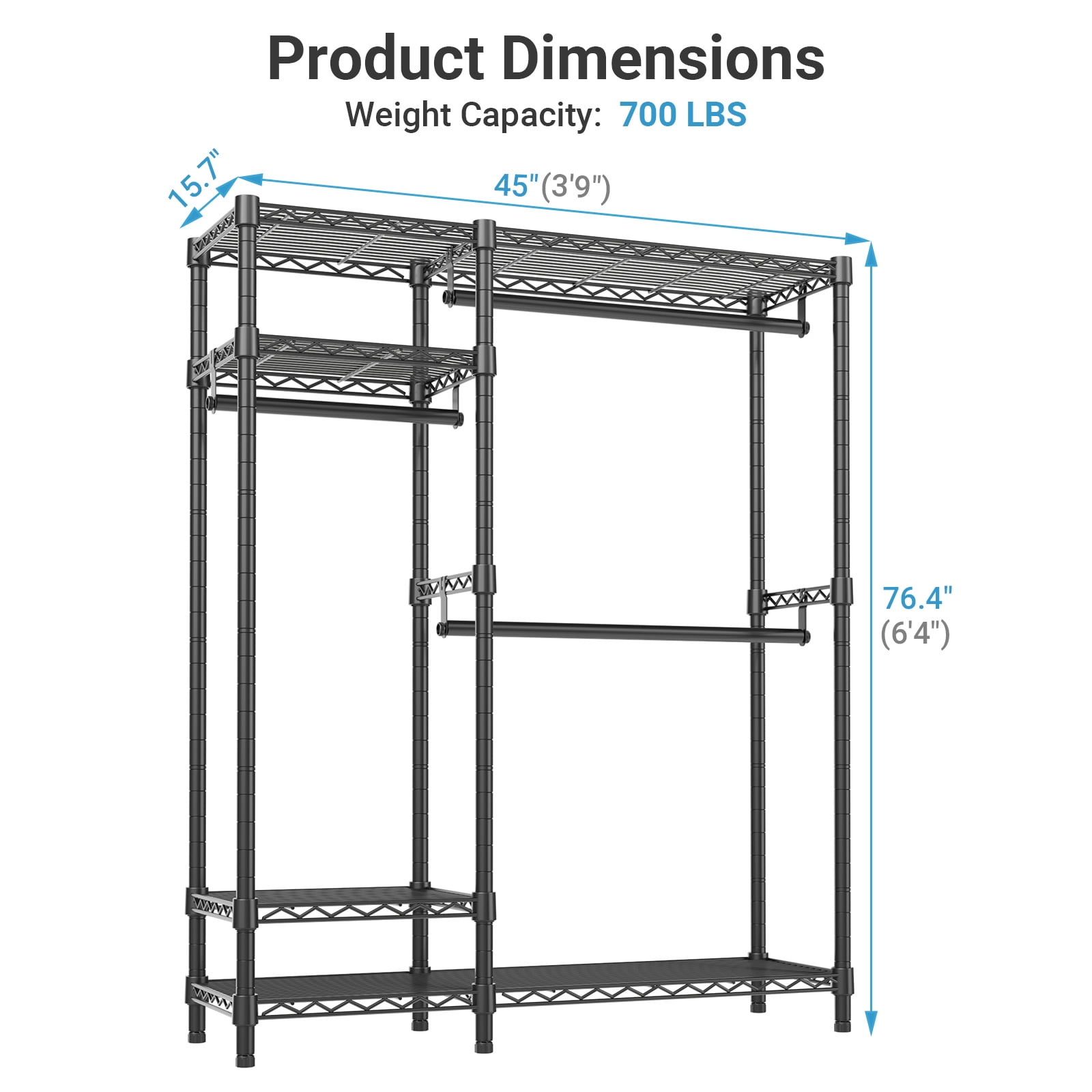 VIPEK V2S Garment Clothes Rack Storage Rack, Max Load 800LBS, Black