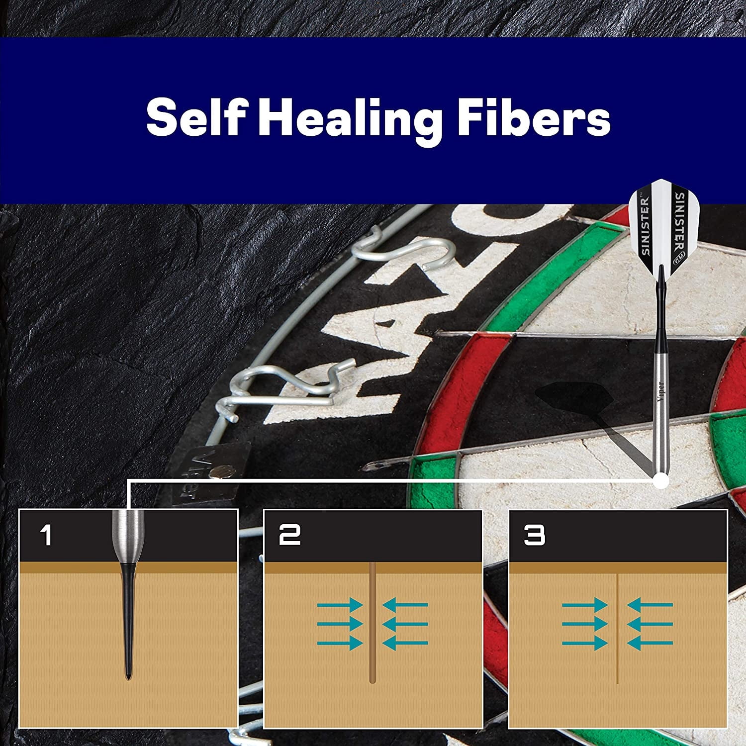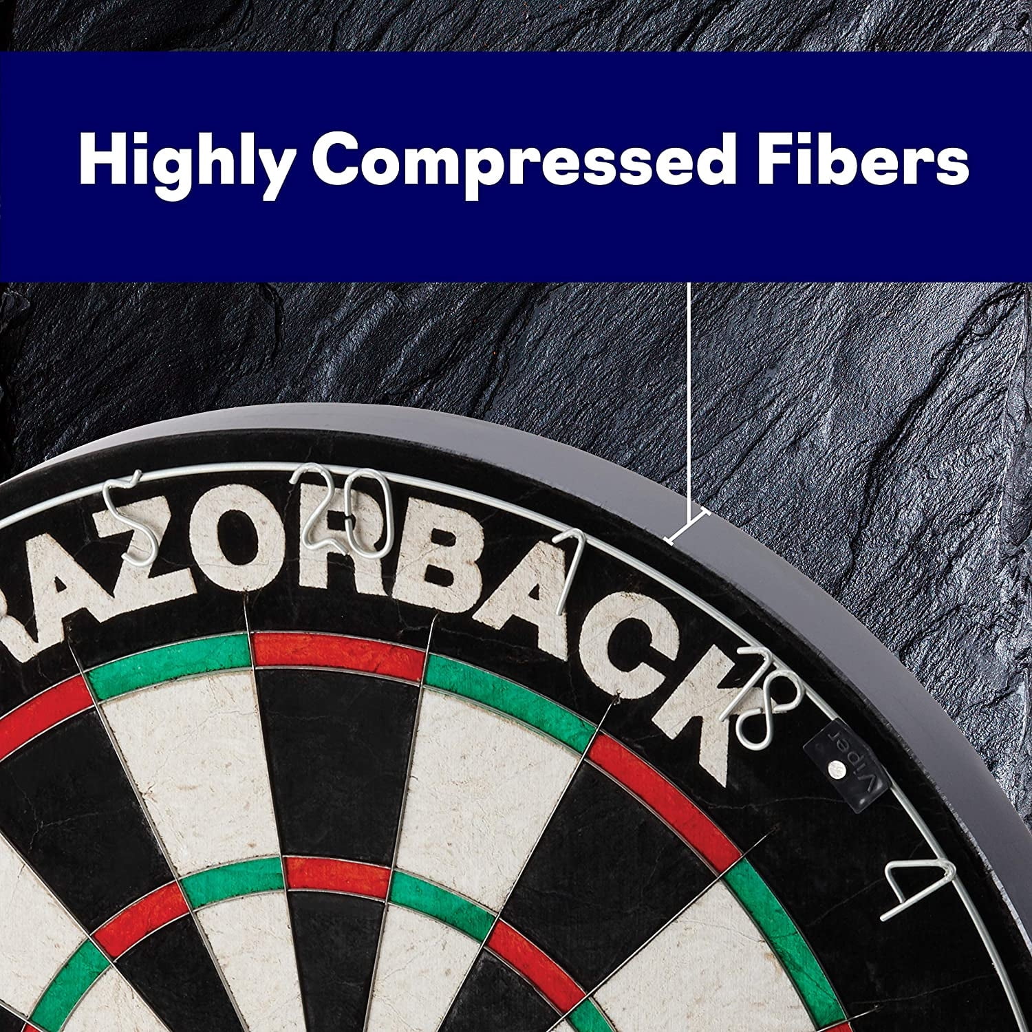 Practice your aim with the VIPER Razorback Bristle Dart Board. Constructed from self-healing sisal bristle fibers, this dartboard is extremely durable. The staple-free spider uses razor-thin galvanized wires, which helps prevent darts from bouncing off the board and keeps you from losing points. Measuring at 18 inches in diameter by 1.50-inches deep, this dartboard is the official tournament size. You and your friends can practice for a local tournament, or you can enjoy a casual game during halftime. You can use steel tip or soft tip darts on this versatile dartboard. The VIPER Razorback Bristle Dart Board has a movable number ring, increasing the dartboard’s lifespan. Mounting hardware is also included, so you can get set up and start playing darts in next to no time.