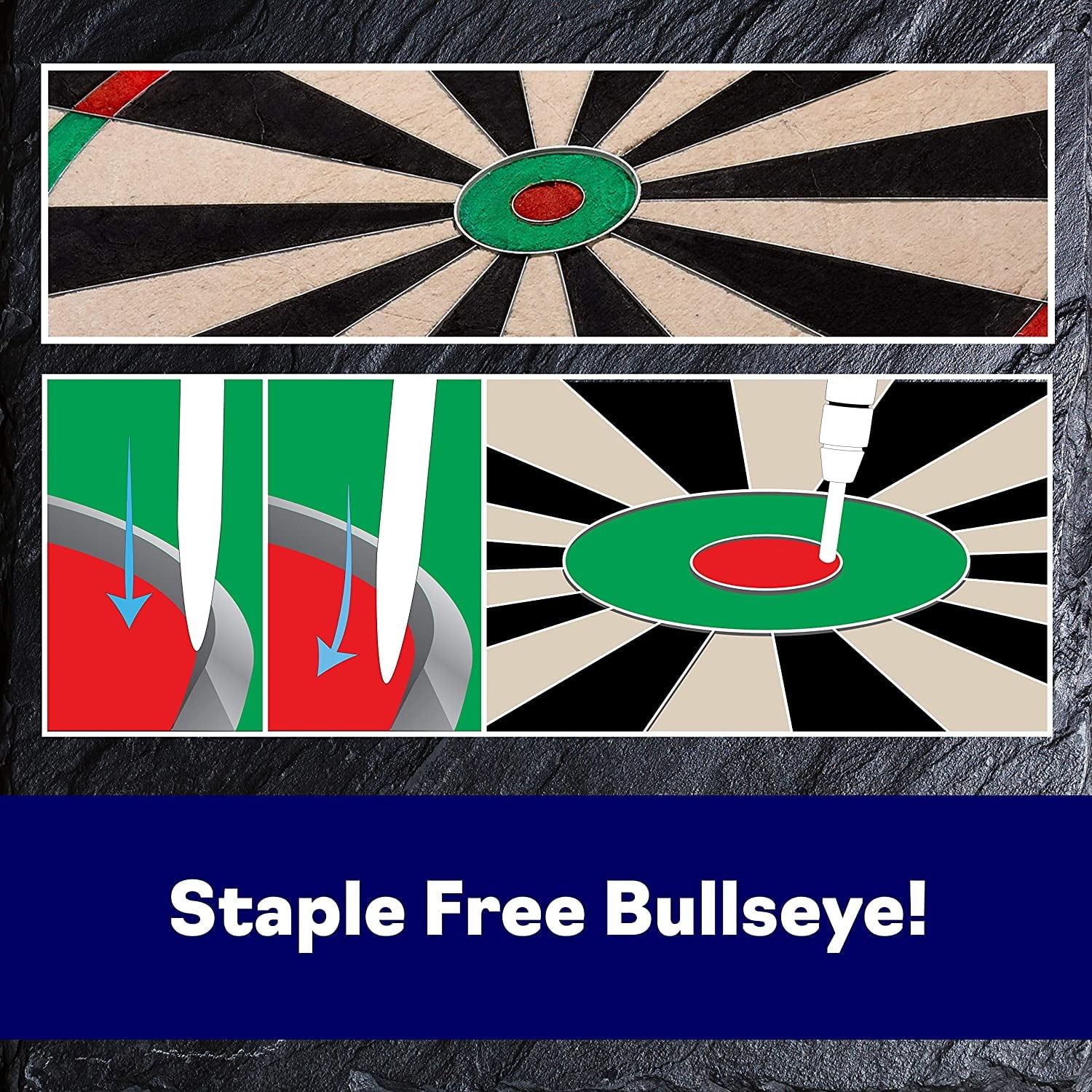 Staple Free thin wires to prevent bounce outs Self healing board constructed of sisal fibers Staple Free construction for fewer bounce outs Movable low glare number ring extends the board’s life Dimensions: 18″H x 18″ W x 1.5″D Weight: 7 lbs Accessories Include mounting Hardware and game manual Product Condition: Brand New! Part Number: 42 6006 90 Days Manufacturer Warranty