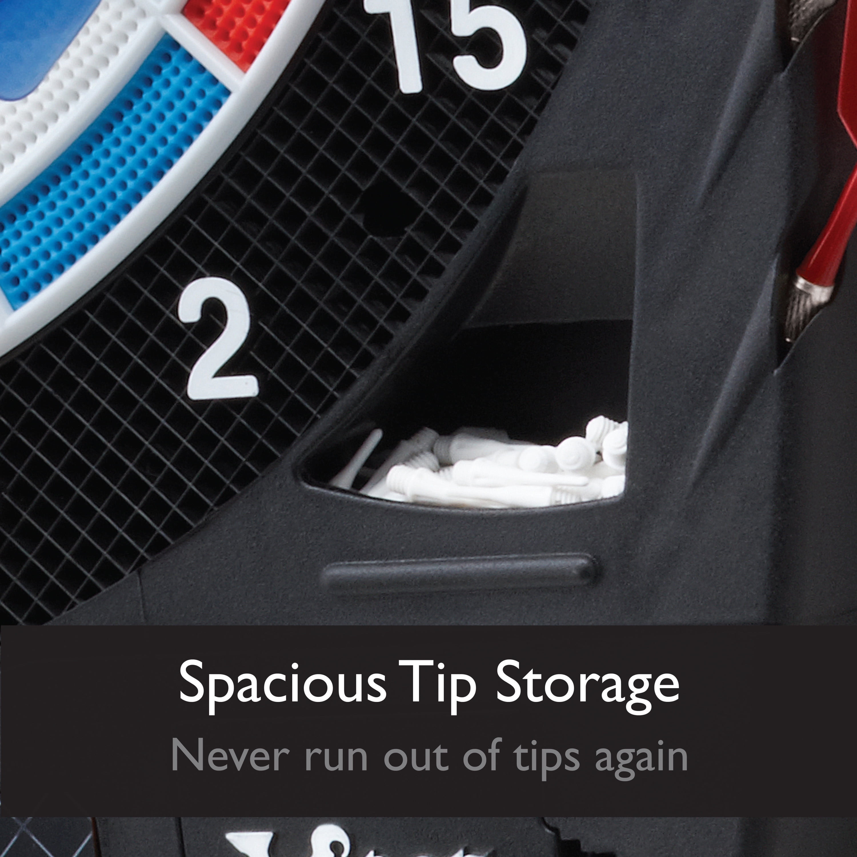 Tournament Quality Regulation 15.5 Target Face. 43 Games with over 320 Options including up to 8 player multiplayer, including team play. Target Tested Tough segments withstand your toughest throws time after time with Concave Segment Holes reduce bounce outs. A simple interface gives the best dart experience. Powered by 3 AA batteries for a cord free board. Includes 6 soft-tip starter darts, a one year warranty and mounting hardware for quick setup.