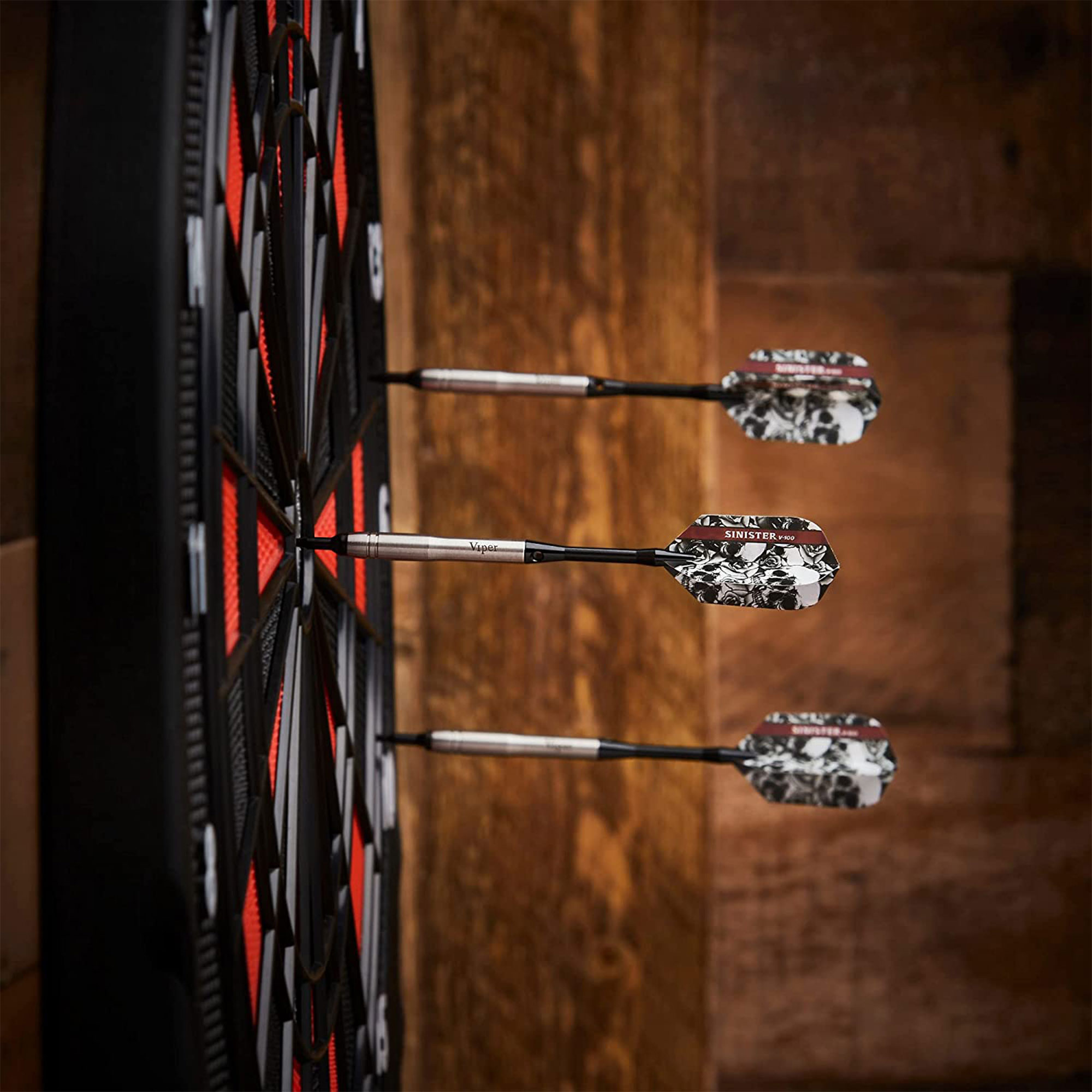 Strike fear into opponents’ hearts – and sure shots into the board – with the Viper Sinister 95% Tungsten Soft Tip Dart set. Each of this set’s three included identically CNC machined barrels – you choose from 16- and 18-gram options – is crafted with 95% tungsten and a narrow quarter-inch diameter for tighter shot groupings. Six graphic flights say “sinister” in black and white. The set is complete with three nylon and three aluminum shafts and a repair tool. About GLD Products GLD Products has been manufacturing and distributing well-known family gaming products for over 30 years and is proud to be America’s leading innovator of darts, billiards, table games, and home casino products. GLD is located in Muskego, Wis. Identically CNC-machined, 95% tungsten barrels Narrow .25-inch diameter for tighter shot groupings Choose 16- or 18-gram darts Soft tips for use with electronic and steel tip dart boards 3 barrels, 6 flights, 3 nylon and 3 aluminum shafts, repair tool