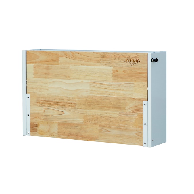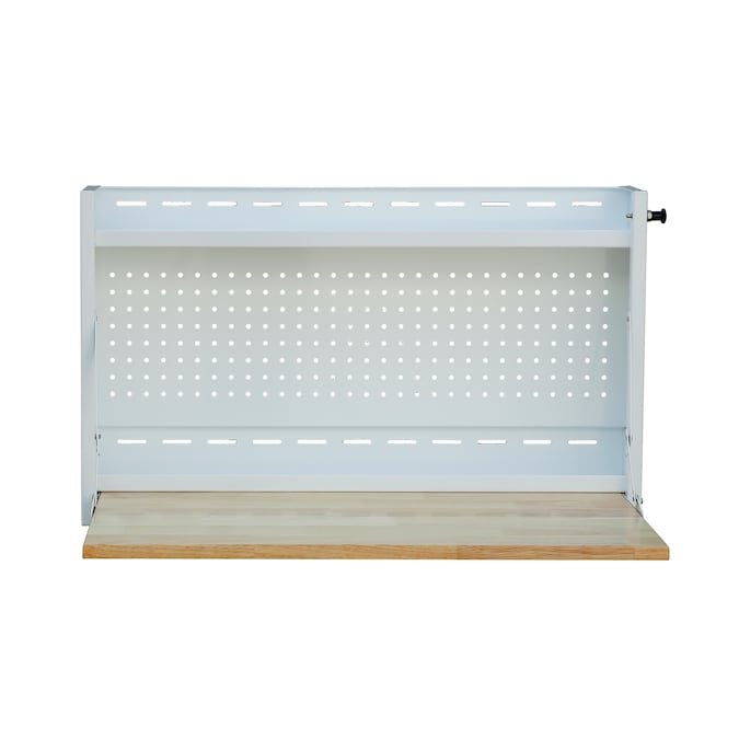 Create a workstation in an instant with this wall mounted worktable by Viper Tool Storage®! Crafted with sturdy 19-gauge steel and powder coated for a durable finish, this unique table includes a fold-down work surface, 2 shelves and built-in pegboard. Mount it to a wall at your desired height for the perfect stand-up or sit-down workstation that folds up out of the way when not in use.