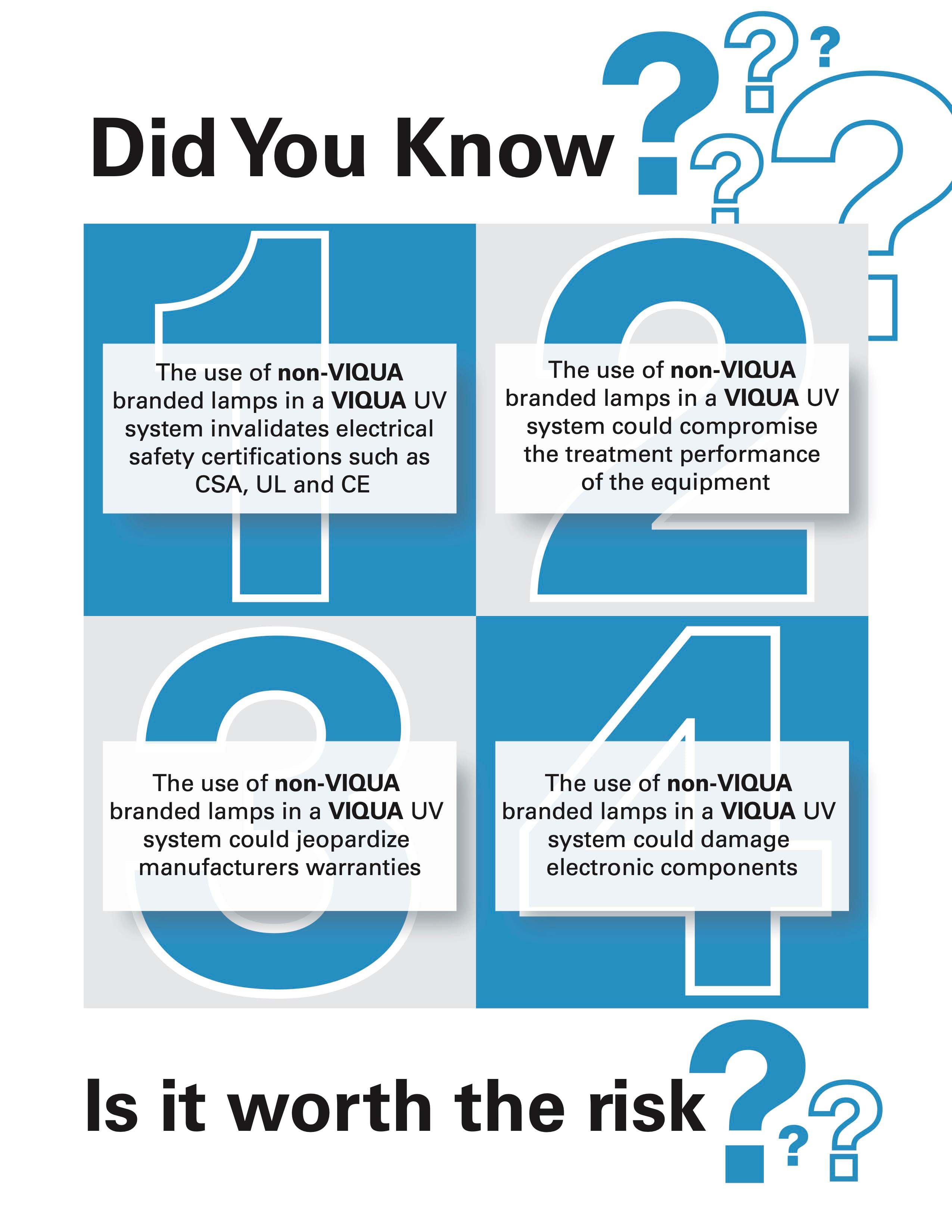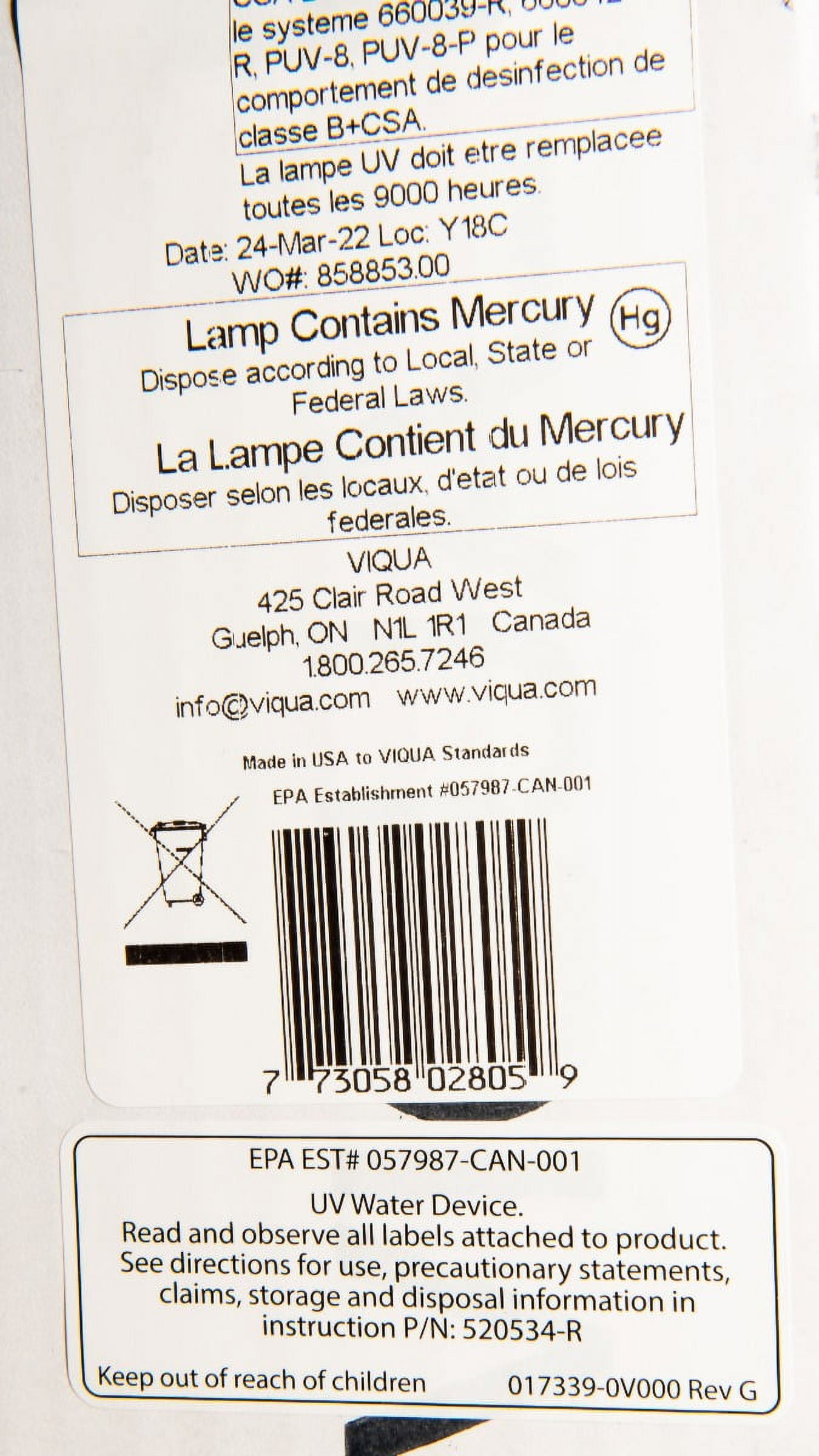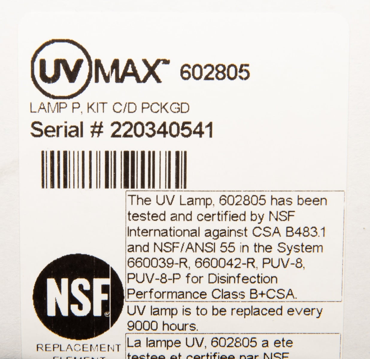 The VIQUA 602805 ultraviolet Lamp is a replacement bulb for the VIQUA D4, D4+, D4-V, and D4-V+ systems and discontinued Trojan C, C4, and C4-V systems. Easy to install and maintain with replacement needed every 12 months. Genuine VIQUA replacement part. Safety Note: NEVER look directly at the UV lamp when it is powered on. Follow the instructions carefully to avoid injury to eyes and skin. Annual Lamp Change: After a year, UV light weakens and isn’t strong enough to properly treat your water. Replacing your lamp annually with a genuine VIQUA lamp ensures optimal system performance.