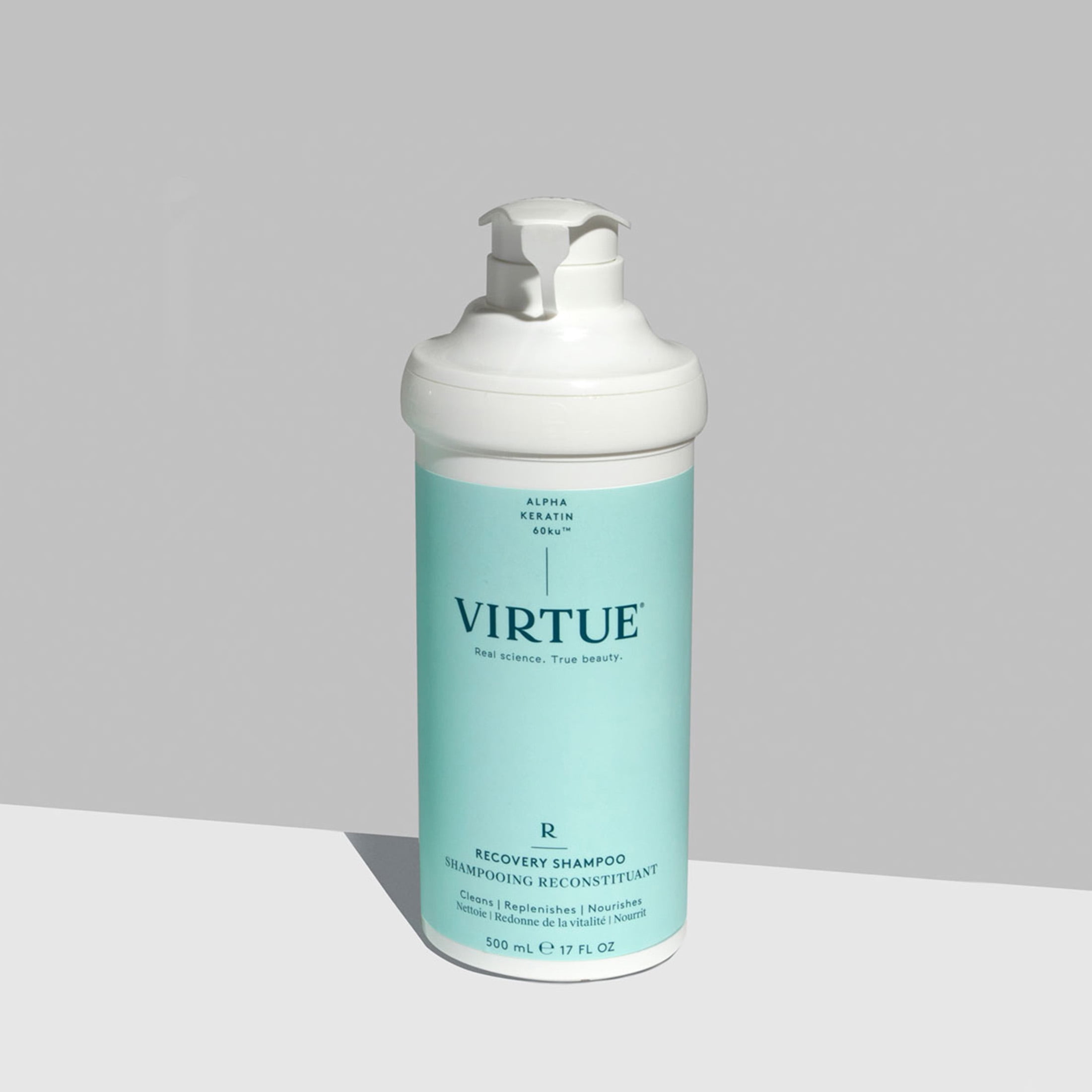 KEY INGREDIENTS • Alpha Keratin 60ku®: Virtue’s proprietary human keratin, repaves and repairs damage to give you stronger, healthier, shinier hair in as few as five uses. • Hydro Qna: This plant-based protein is a remarkable ingredient for hair, enhancing color, moisture retention, and shine. • Baobab Sd Oil: From the African Tree of Life (known for its ability to store water), this rich, silky oil can act as an intense emollient for dry, damaged hair. • Grapefruit ext: Loaded with vitamin C and antioxidants, this refreshing fruit helps revitalize the scalp and returns hair’s vibrance and shine. KEY CLAIMS: • 97% of women said their hair felt softer after just one use.* • 97% of women felt their hair was less damaged.* • 91% of women felt their hair was more manageable.* *Consumer Perception Study of 42 women who used Recovery Shampoo and Conditioner for 2 weeks (10 uses). A luxurious, lathering shampoo with a clean but hydrating finish.