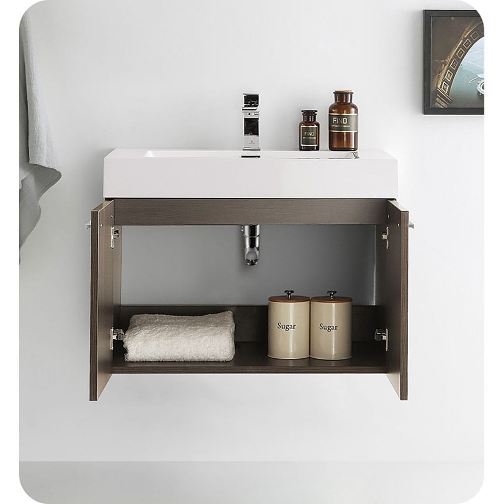 Take your bathroom from basic to beautiful with the Fresca Vista line. The contemporary Gray Oak wall mounted bathroom cabinet offers superior storage, soft close doors and sleek brushed pulls. This lovely cabinet is available in multiple sizes to give a chic, modern touch to any bathroom.
