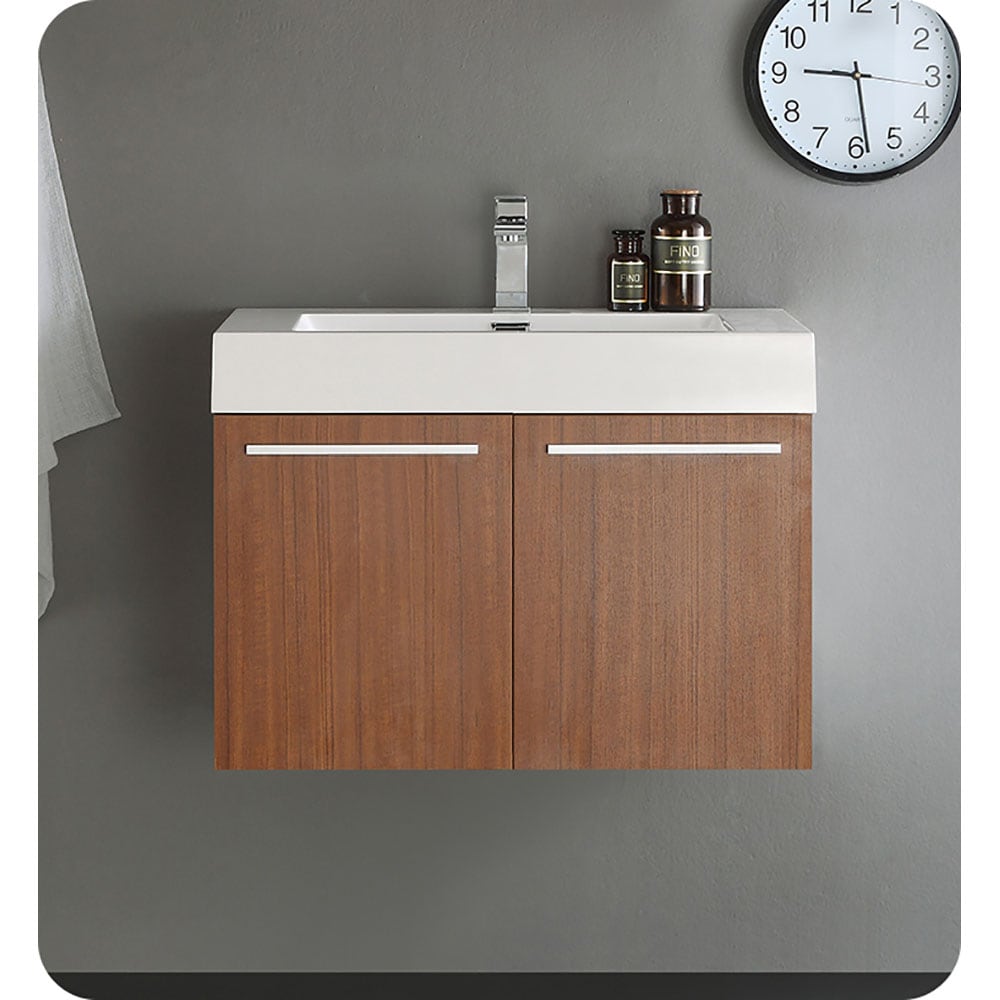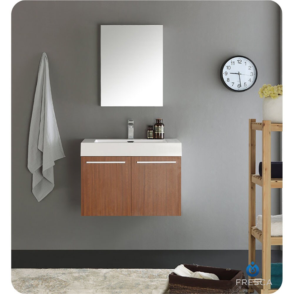 Take your bathroom from basic to beautiful with the Fresca Vista line. The contemporary Teak wall mounted bathroom cabinet offers superior storage, soft close doors and sleek brushed pulls. This lovely cabinet is available in multiple sizes to give a chic, modern touch to any bathroom.