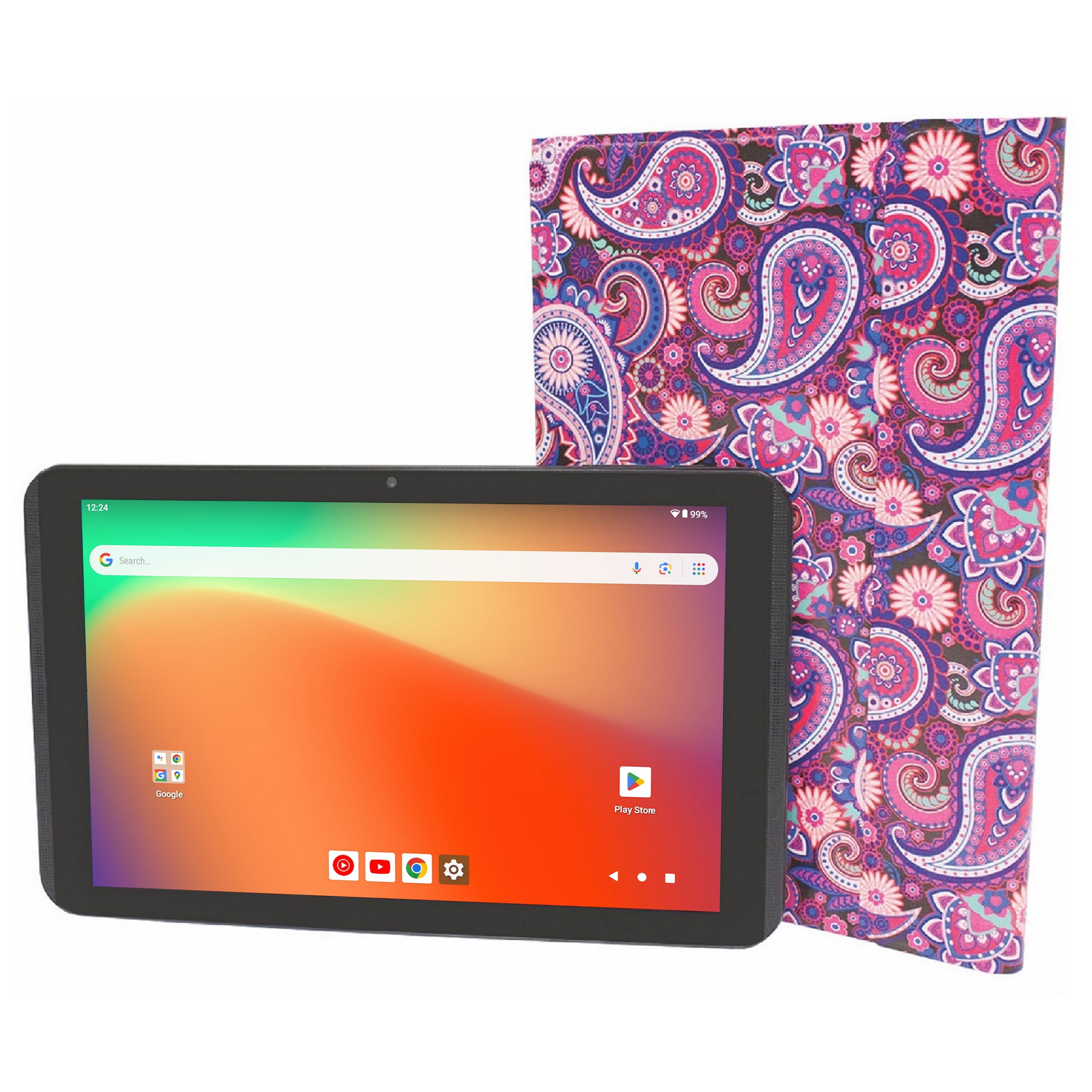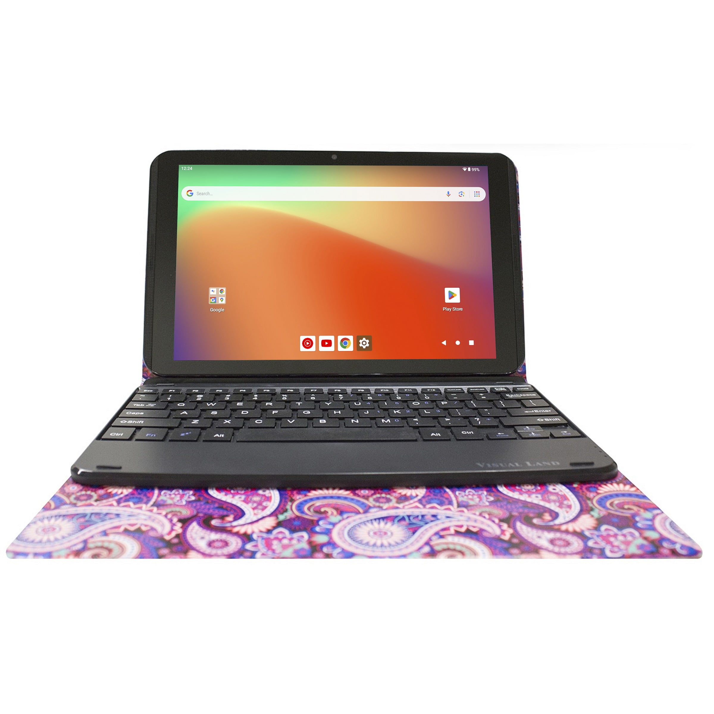 Visual Land Prestige Elite 10QH 10.1″ HD IPS Android 13 Quad-Core Tablet, 128GB Storage, 2GB RAM, with Keyboard Case – Paisley
