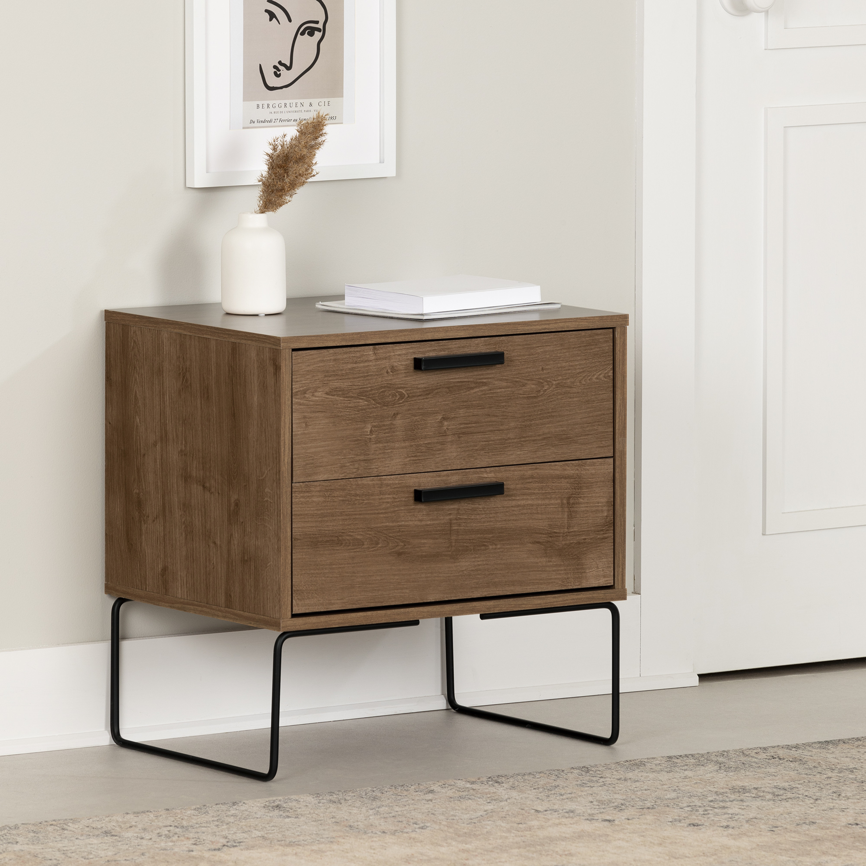 For REPLACING PARTS and HELP DURING ASSEMBLY, please contact us by phone at 1-800-290-0465, text message at 915-800-2833 (USA) (fees may apply), email at [email protected] or fill a part request form on . South Shore Vito, Scandinavian End table, Dark Wood DRAWERS ON METAL SLIDES: The two large drawers in this accent table are easy to open, so you can use them to keep your books, remotes, and any other accessories that you’d like to have stored away. They’re mounted on metal slides, so smooth, silent use is guaranteed! A MID-CENTURY SCANDINAVIAN LOOK: The retro legs, straight lines, and superb handles in this small storage piece will give your room an oh-so-trendy look. VERSATILE: This accent table is an excellent way to finish off the decor in your living room, bedroom, home office, or even basement. It’ll be easy to move over the years if you ever decide you want it in another room! Made in Brazil with non-toxic, laminated particleboard. Accessories not included. 1-year limited warranty. Any questions? Contact South Shore, available 7/7: 1-800-290-0465 or Assembly is required and tools are not included. All products come with a clear assembly document that will guide you through all steps. If you have any questions during the assembly do not hesitate to contact South Shore Furniture for immediate support. This item is shipped in 1 box. Box dimensions : 37.5″ (L) x 18.5″ (W) x 8.5″ (H) 35 lb All our products meets or exceeds North American safety standards and our packaging are tested and certified to reduce the risk of damage during shipment. Wipe with a dry cloth