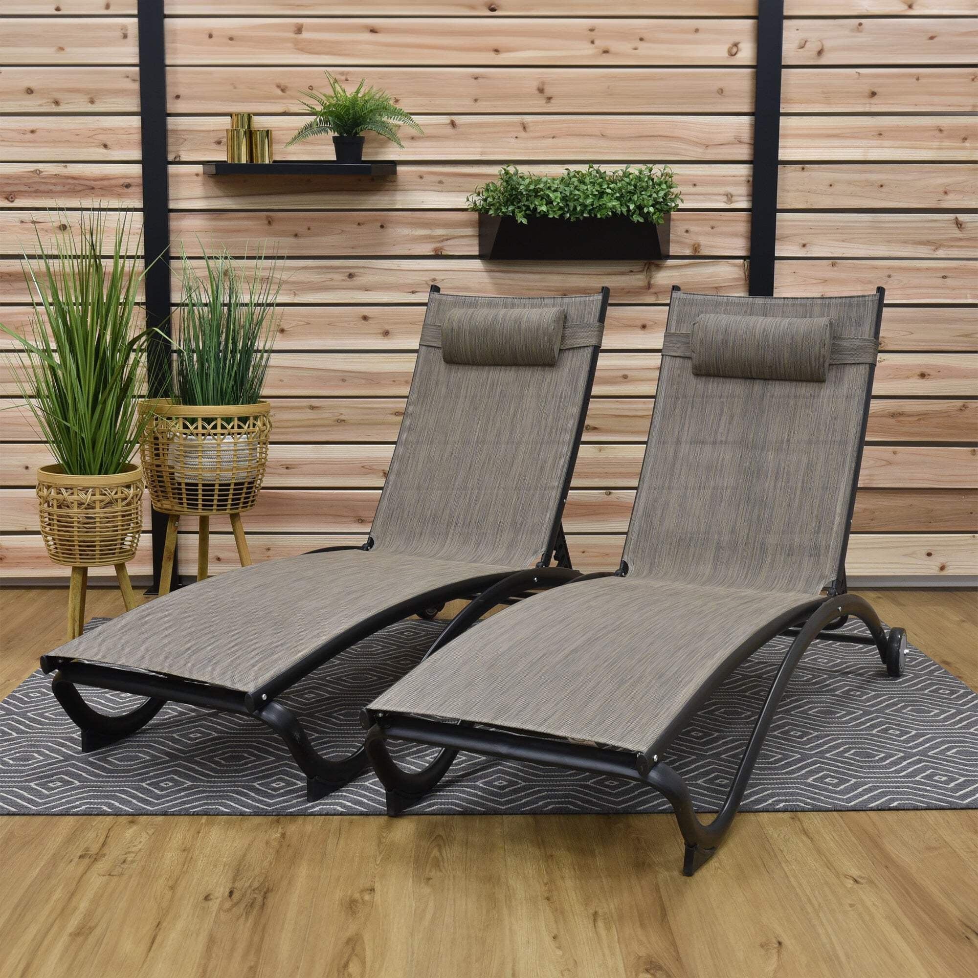 Vivere Aluminum Glendale Lounger Set Made with Premium Phifertex Outdoor Fabric ( 330 lb Capacity) Granite