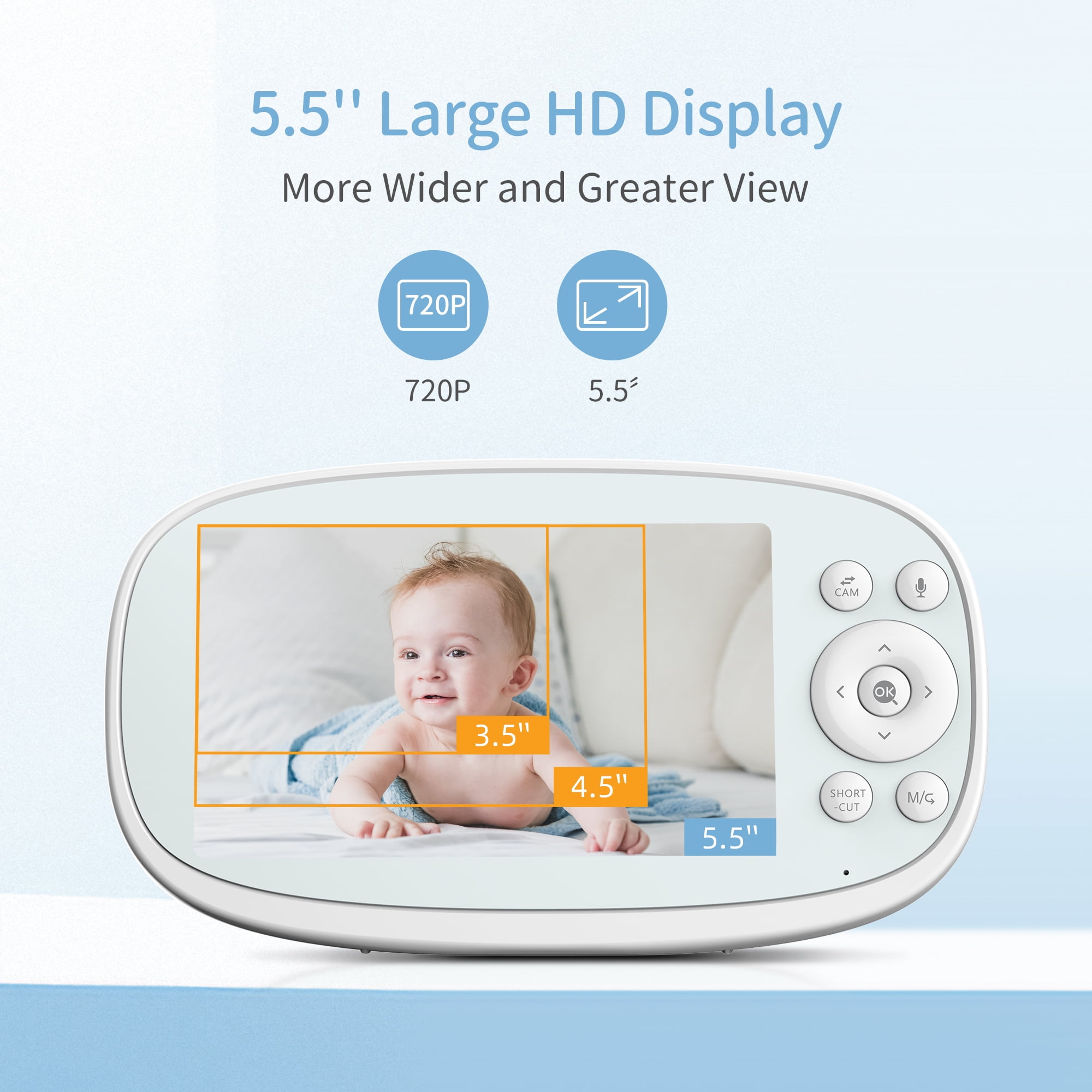 Vizolink 5.5″ HD Video Baby Monitor with Camera, 2-Way Talk, Cry Alert, Lullabies, Temperature Tracking