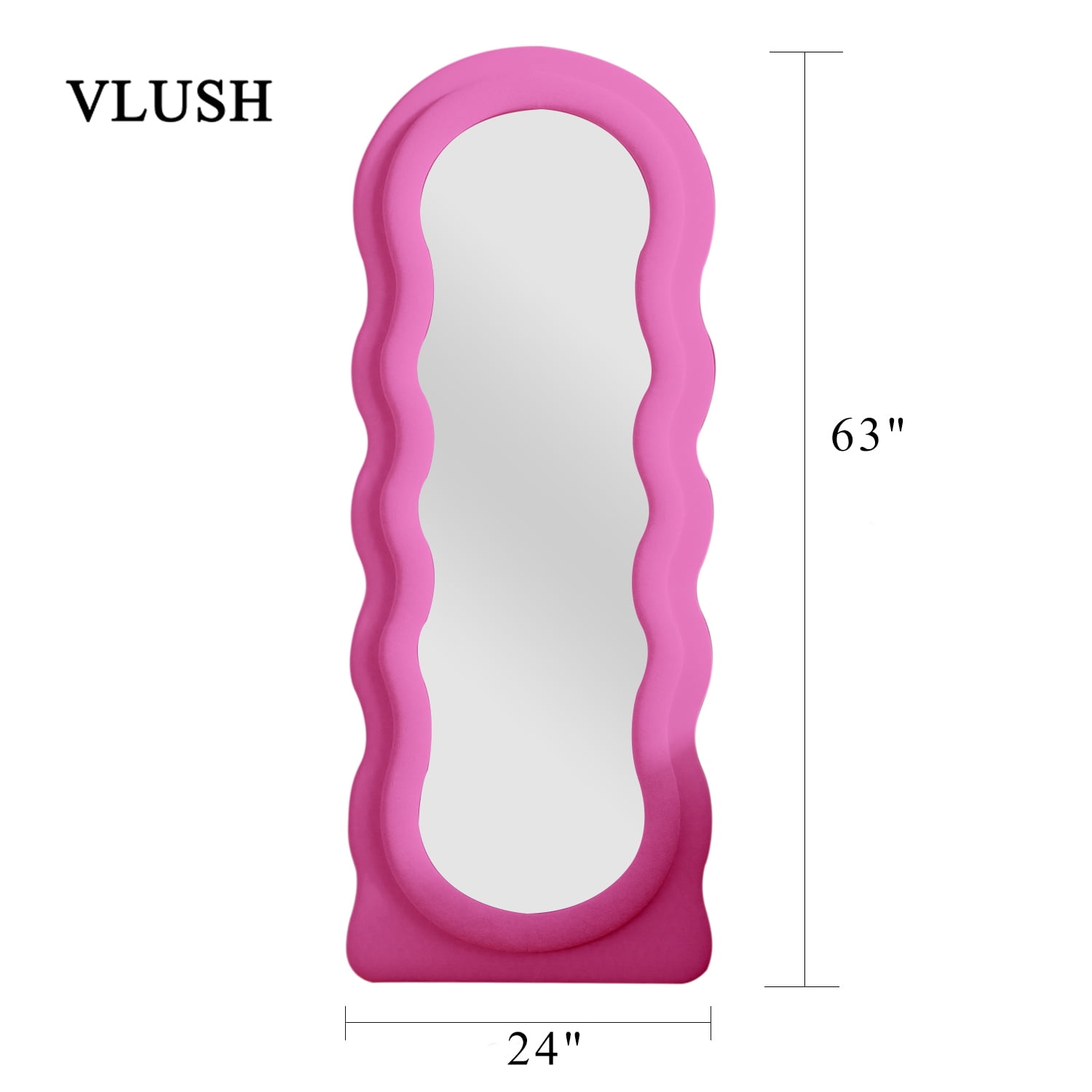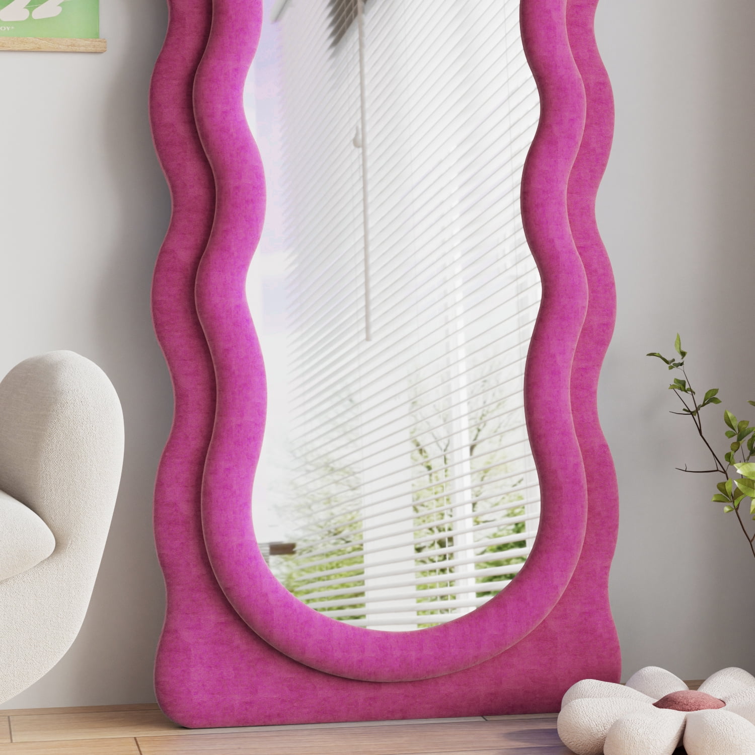 VLUSH Wavy Full Length Mirror, Freestanding Floor Mirror with Stand, 63″x24″ Wall Mounted Mirror for Bedroom (Pink)