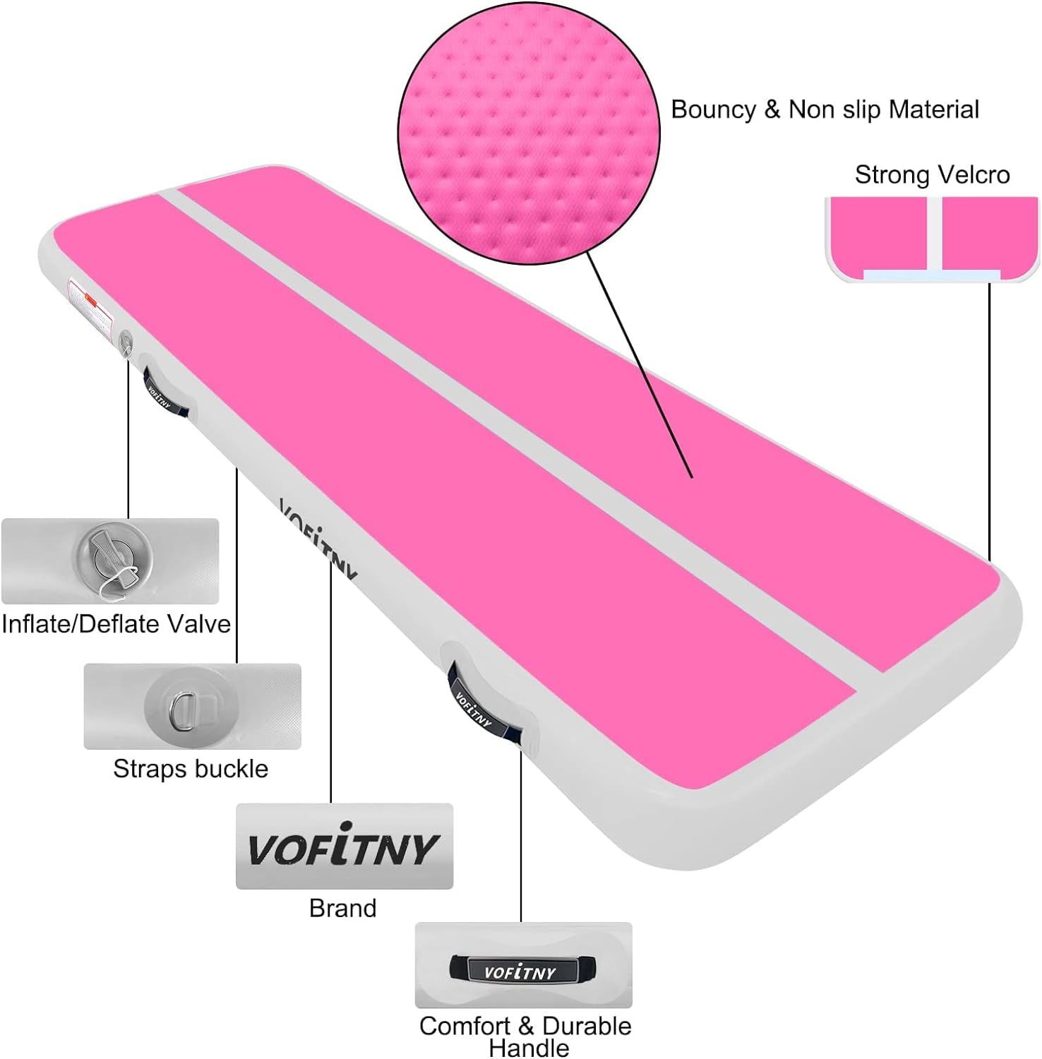 VOFiTNY 4-Inch Inflatable Gymnastics Mat, 10ft x 3.3ft, Pink