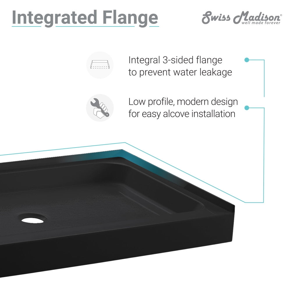 Low Single Threshold: Shower bases featuring a low single threshold offer consumers versatility, enhanced safety, and superior accessibility. Fiberglass reinforced acrylic: Provides a low-maintenance option that provides ease of cleaning and durability. High-gloss finish: Shower bases featuring a high gloss finish offer a sleek appearance, ease of cleaning, and durability. Integral 3-side flange to prevent water leakage: Shower bases with a three-side flange offers superior waterproofing and structural support. Right-hand drain : Installation for a right-hand drain location. Sold Separately: Shower drain is not included. Collection: Part of the Voltaire Collection, explore additional products in this collection to complete the room.
