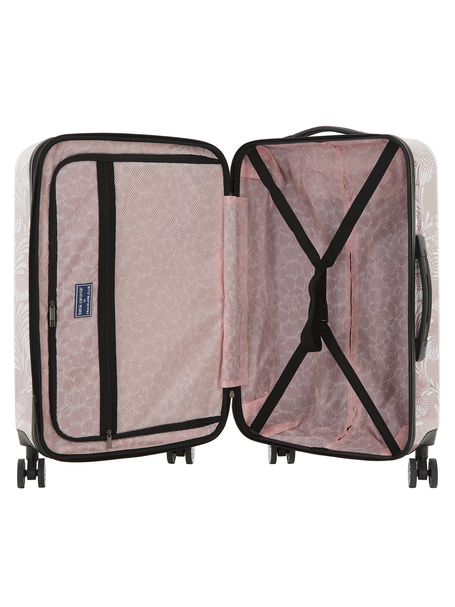 Stylish telescopic trolley handle adapted to your height for easier handling Fully lined interior with adjustable straps to hold contents in place Expands for added packing capacity Spinner wheels allow complete upright mobility for free-weight rolling. Available in 3 patterns: Jamila, Selva and Jardin