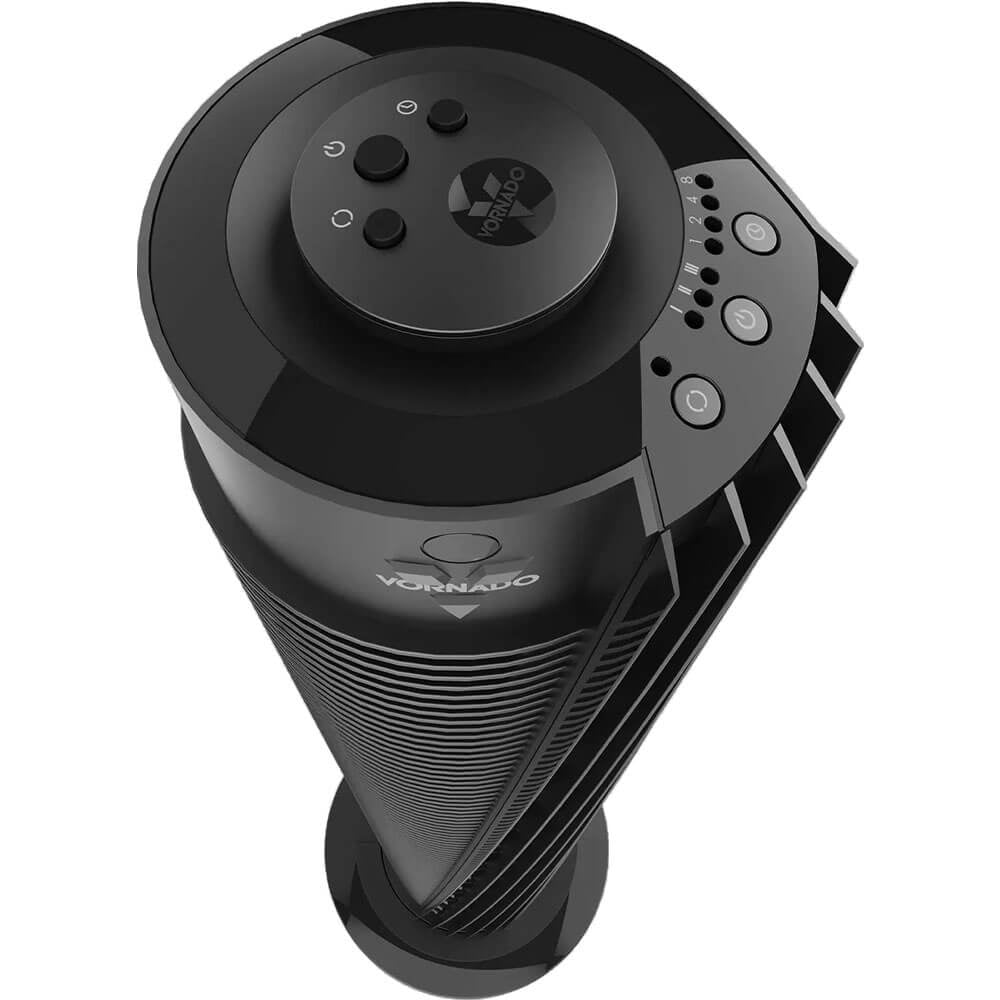 CIRCULATE OR OSCILLATE – Utilizes Vornado’s signature V-Flow Technology to provide complete circulation of all the air in a room, or opt to activate oscillation for 130-degrees of cooling airflow. MOVES AIR FURTHER – Powerful motor produces higher volume of air movement and pushes air up to 70 feet. SIMPLE CONTROLS – Push-button controls allow you to select from 3 speed settings, and a remote control that magnetically cradles at the top of the unit provides additional convenience. ENERGY SAVING TIMER – Choose from 1, 2, 4, or 8 hour timer to ensure you run your tower circulator in an efficient, energy-saving way.