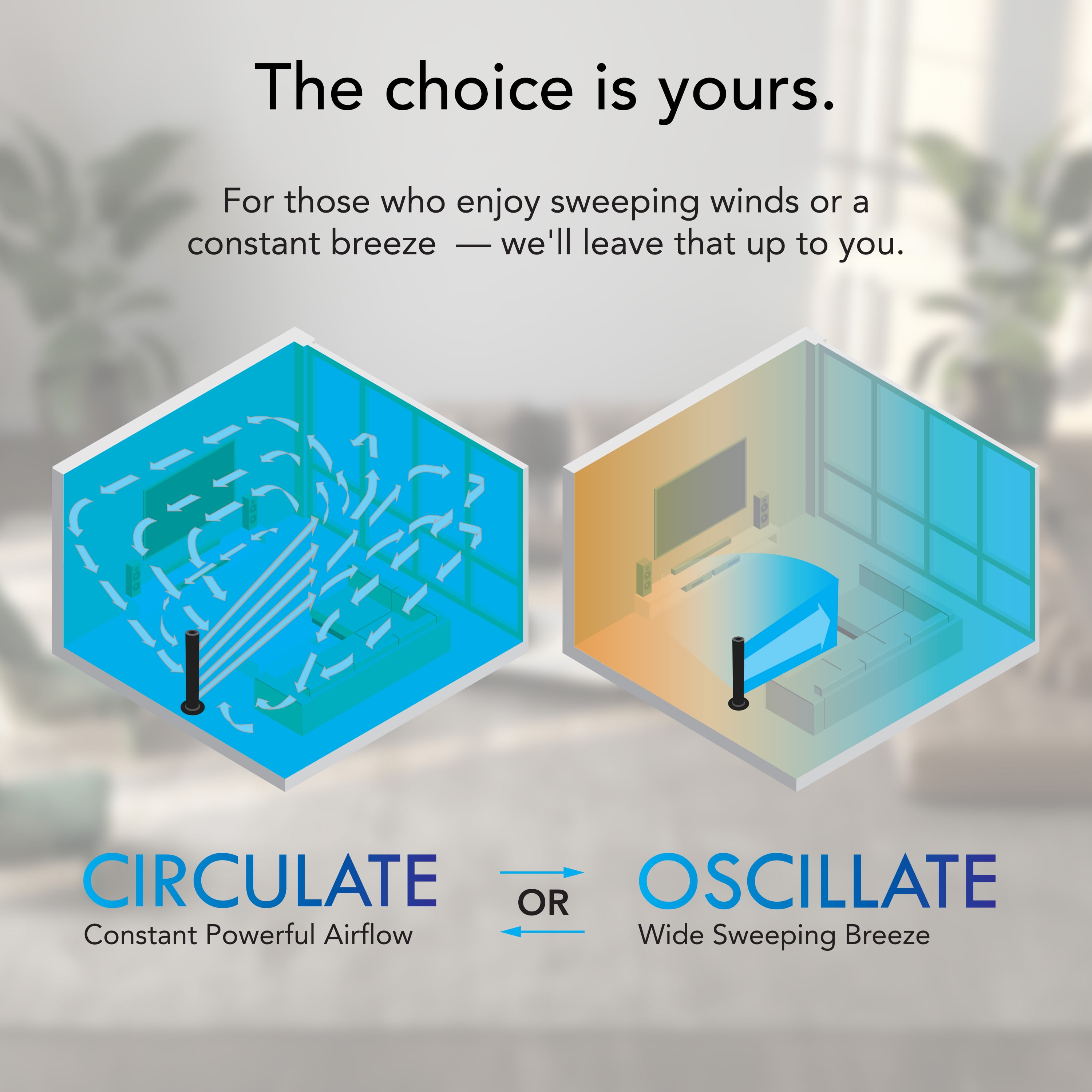 CONTINUAL AIRFLOW – Experience the power of Vornado with OZI42 tower fan’s innovative airflow system. Featuring 70-degree oscillation, this standing fan is engineered to circulate air throughout the entire room, delivering consistent and powerful cooling throughout your bedroom, living room, or office space. SIMPLE CONTROLS – Simplify your cooling experience with intuitive push-button controls that let you choose from 5 different speed settings. For added convenience, use the included remote control to adjust settings from anywhere in the room. ENERGY SAVING TIMER – Enhance your comfort while saving energy with our 1-8 hour timer feature. This smart timer allows you to run your oscillating tower circulator efficiently, providing effective cooling while minimizing energy consumption. SUPERIOR SUPPORT — Our standards are high, and so are your expectations. If our product doesn’t meet them, we’ll replace it, for up to 5 years. Products designed and supported in Andover, KS.