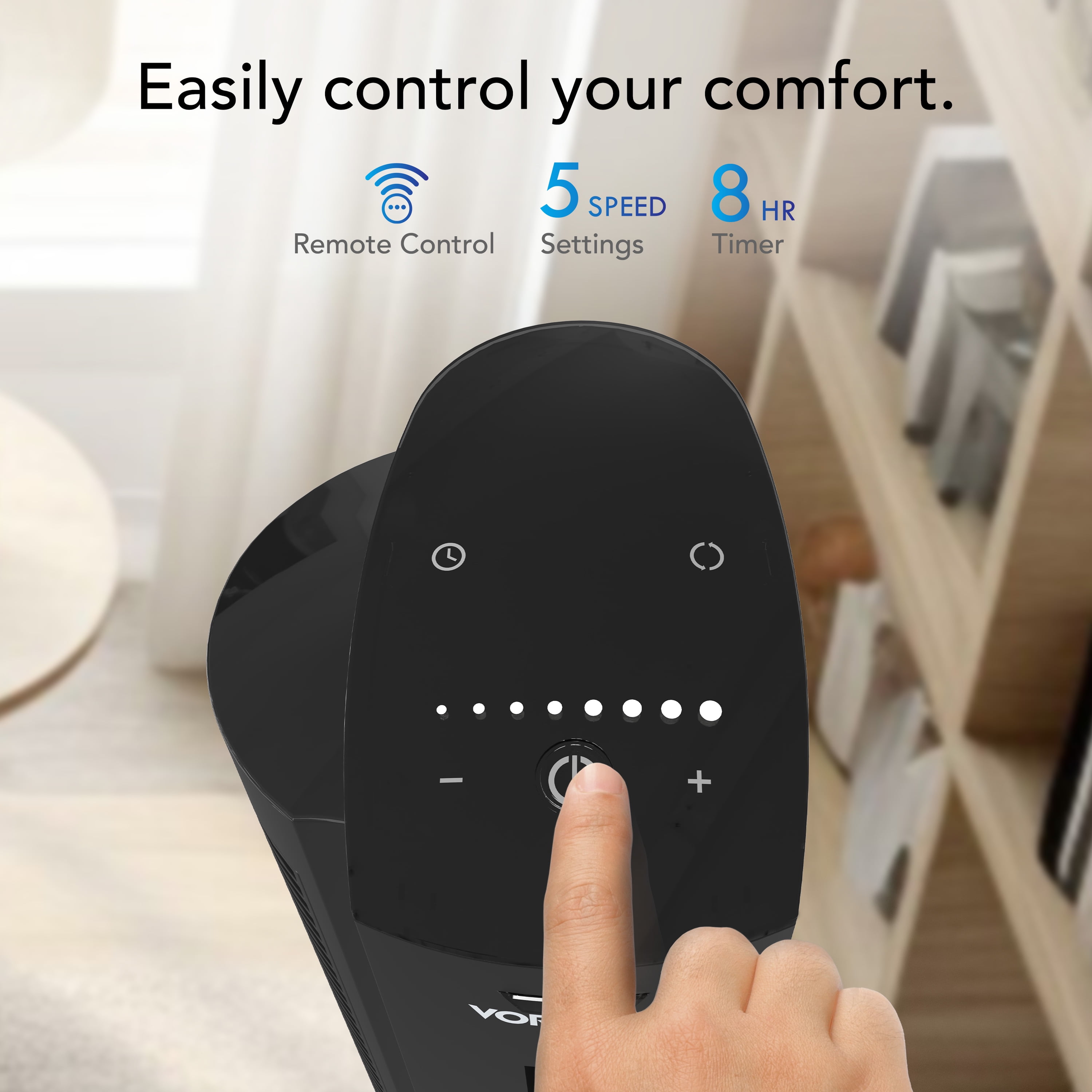 Vornado OZI42 42″ Whole Room Tower Fan, Powerful Air Circulation, Space-Saving Design, Quiet Operation, 5 Speed Settings, 1-8 Hour Timer, 70-Degree Oscillation, Remote Control, Black