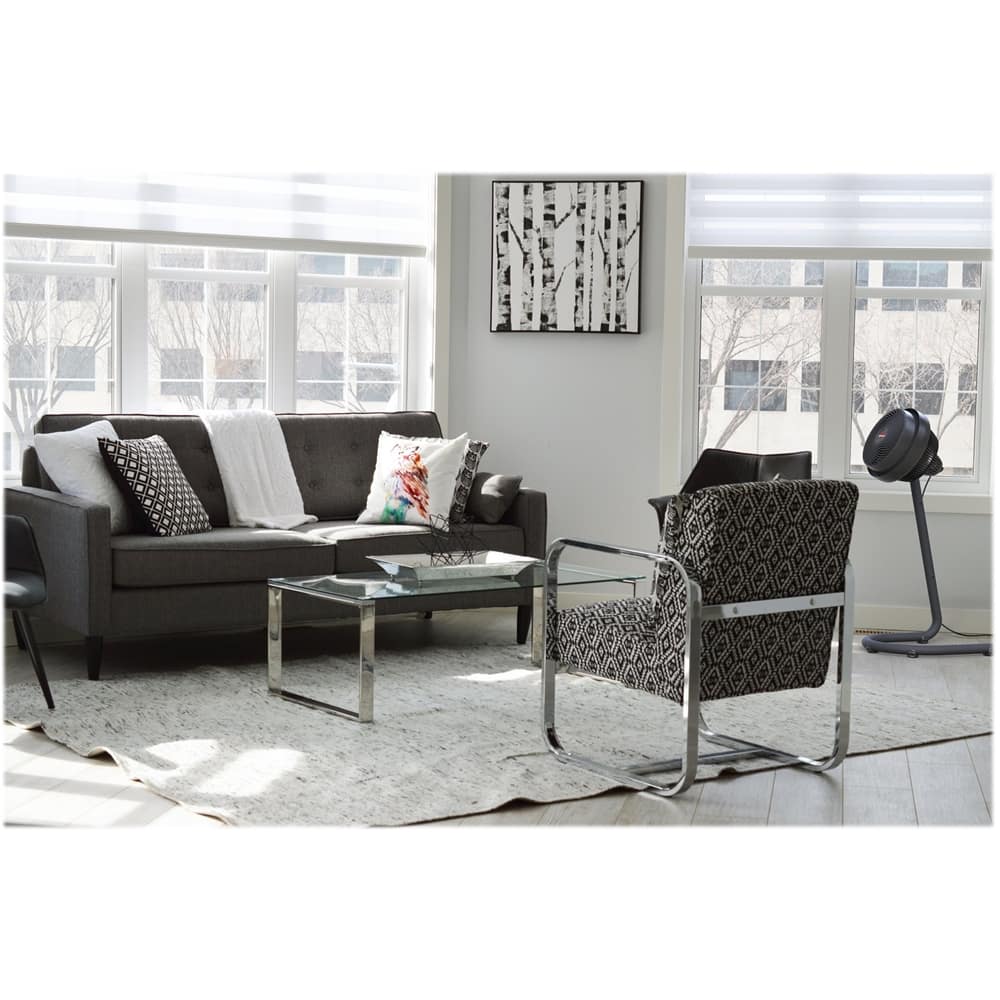 Move air throughout the room to cool down fast with this Vornado whole room air circulator. Three speed settings offer controlled ventilation, while the adjustable height and tilting head deliver multidirectional airflow throughout medium-sized rooms. With signature Vortex technology and deep-pitched blades, this Vornado whole room air circulator removes stuffiness and heavy air at the touch of a switch.