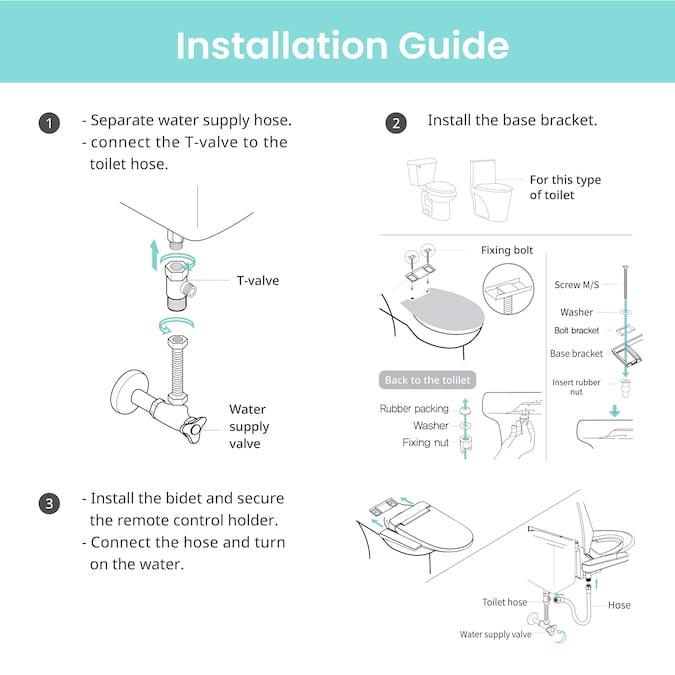 - Full stainless nozzle: performs feminine, posterior, and turbo wash functions, rhythmic movement and 5 different nozzle positions, one touch self-cleaning and semi-permanent use of nozzle