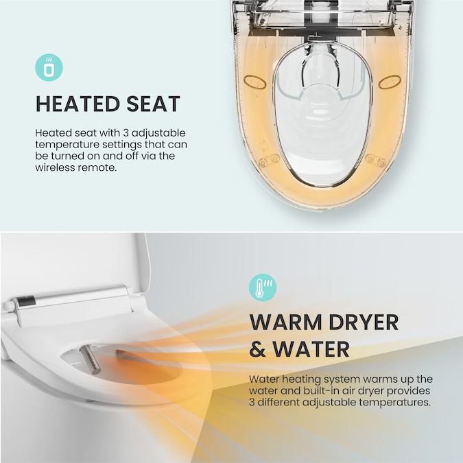 - Wireless control unit functions: smart wireless remote controller with easy one touch operation of bidet functions, has 3 levels of heated seat, warm water and dryer, and 5 levels of different nozzle position and water pressure, user friendly design