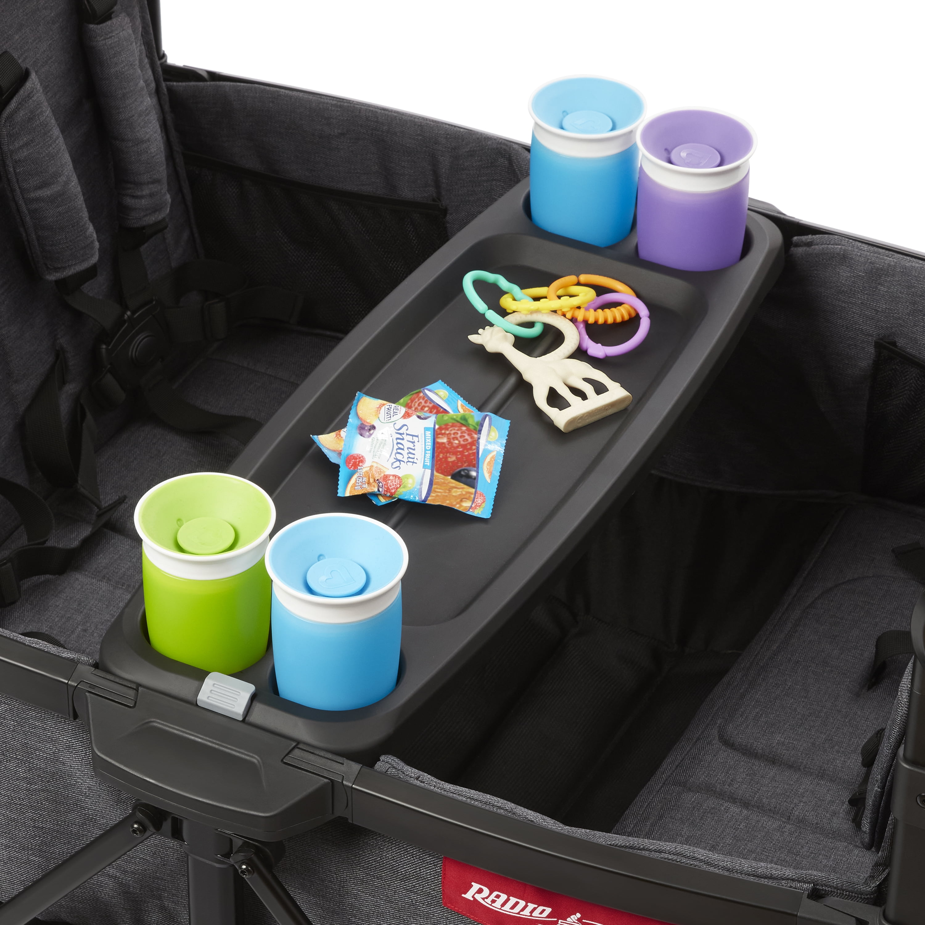 Our most lightweight & compact 4-kid stroller wagon Rigid side walls designed for easy entry Push like a stroller, pull like a wagon Four seats with a footwell Easily folds for storage or transportation Steel-reinforced aluminum frame Durable wheels deliver agile maneuvering for all adventures Removable child snack tray with four cupholders Extensive storage space with XL rear storage bag, parent caddy, and mesh interior pockets Dual UPF 50+ extendable canopies for sun protection Mesh peek-a-boo windows allow enhanced visibility to little riders Two removable parent cupholders Height-adjustable push handlebar Never Fall™ pull handle stays upright when not in use and included in the packaging Four 5-Point safety harnesses Parking brake for stability when stopped, loading, or unloading Meets both the Stroller Standard ASTM F833 and Toy Standard ASTM F963 Suitable for babies, toddlers, and kids ages 6+ months Maximum weight capacity 250 lbs. Assembled dimensions: 41.5″ L x 30.75″ W x 35.4″ H Wagon + accessory weight: 46.2 lbs. Product net content 1 each