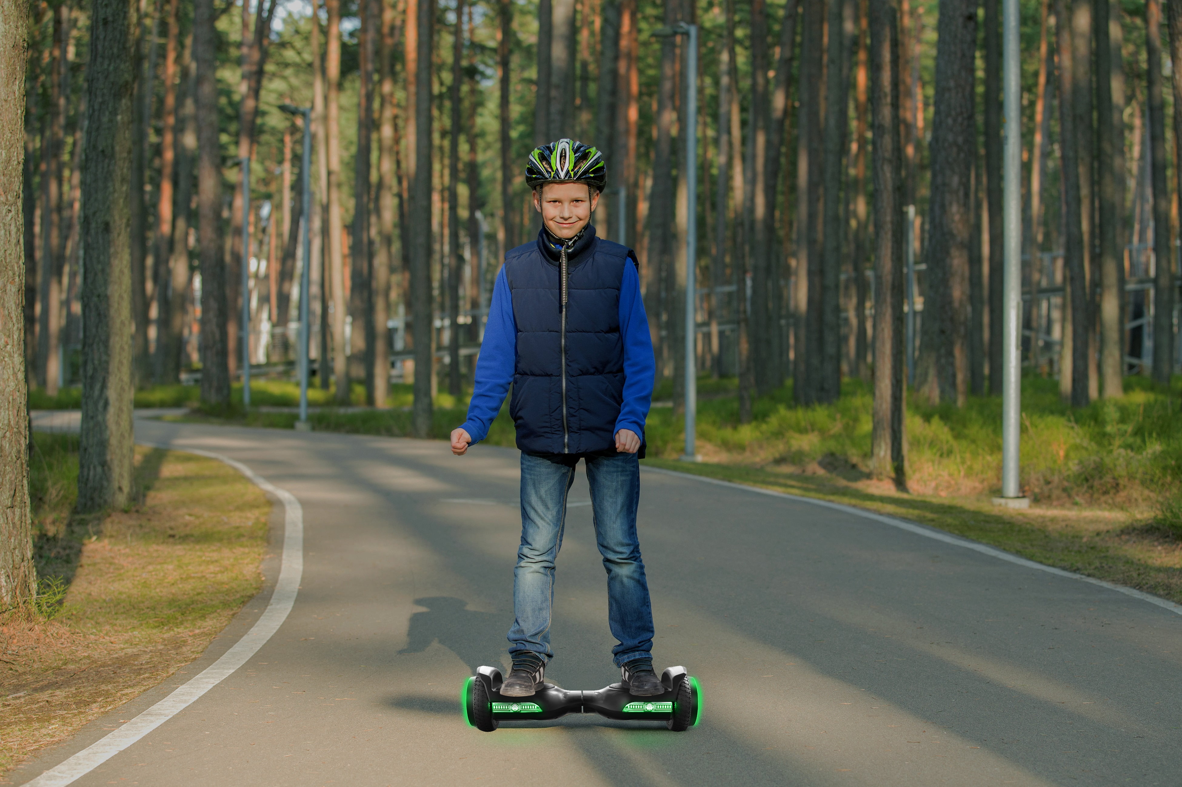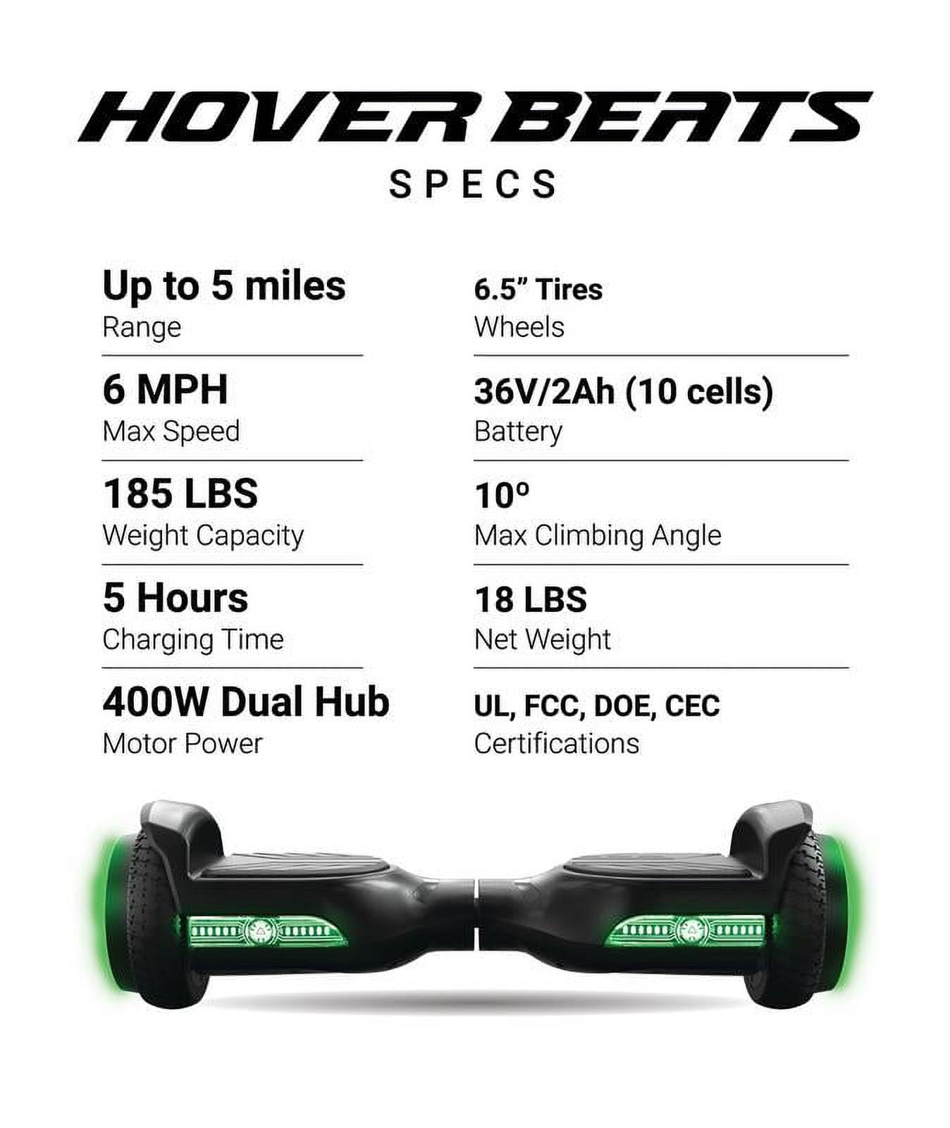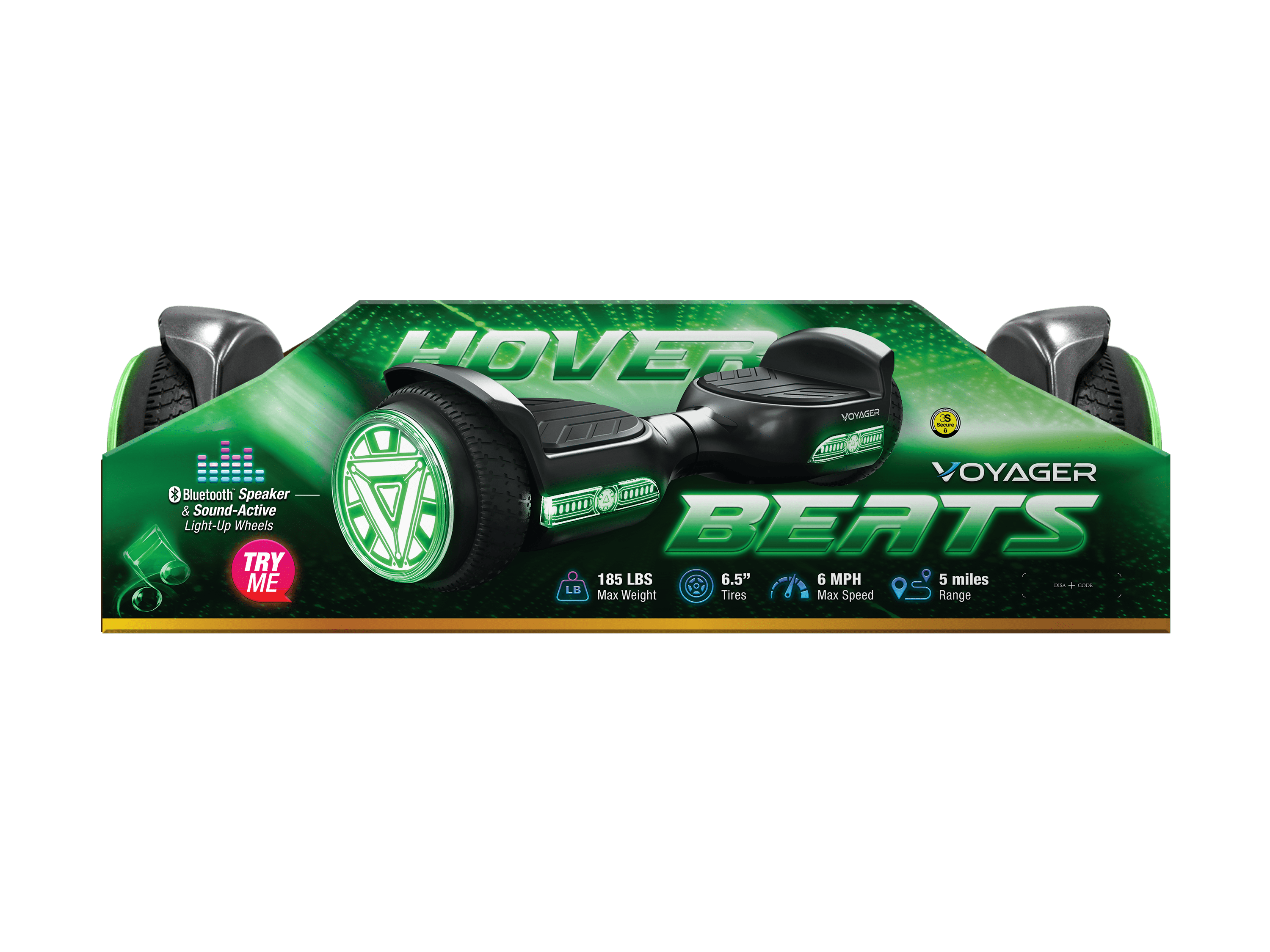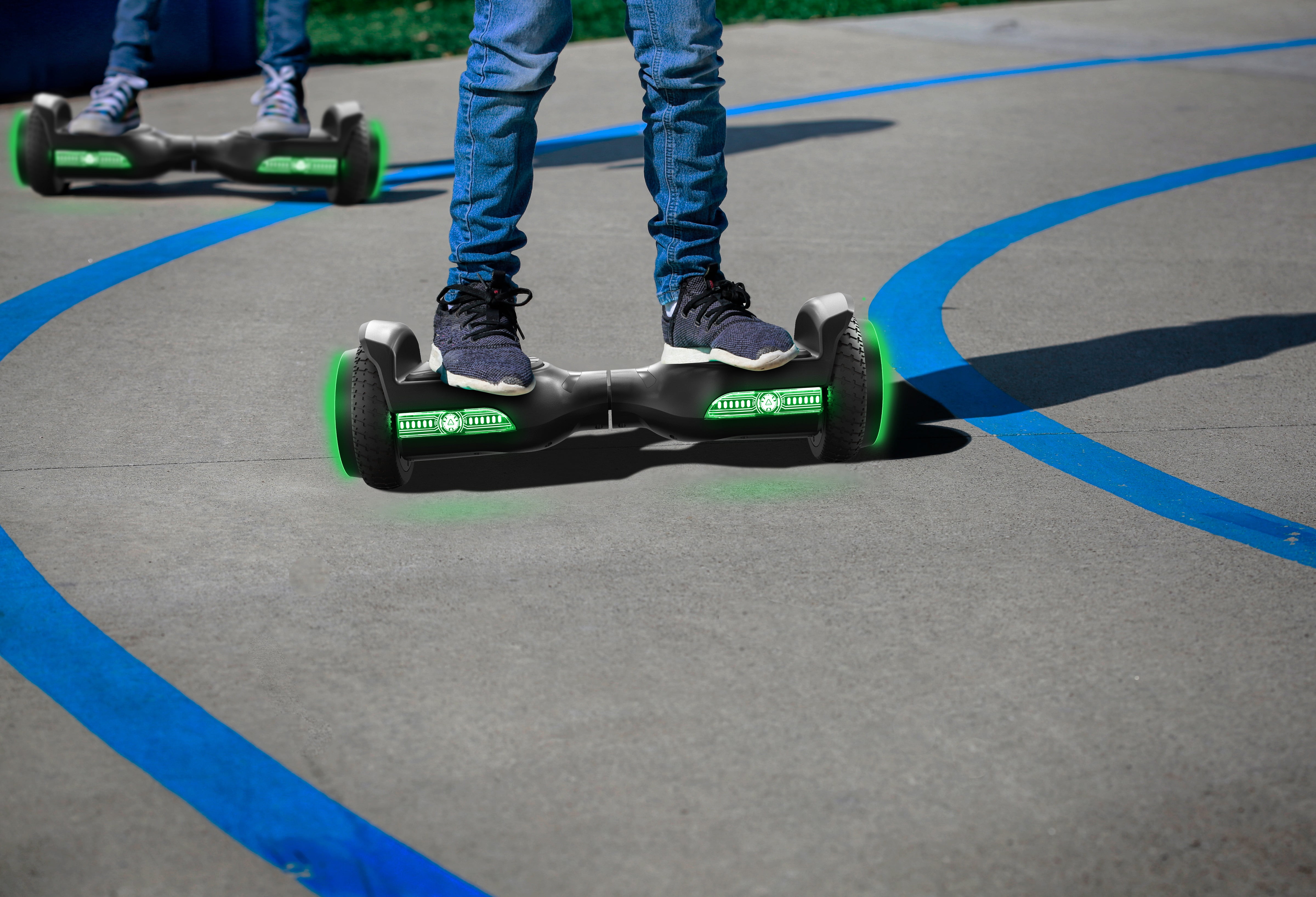 The Voyager Hoverbeats Bluetooth hoverboard is for kids and adults under 225 lbs. It comes equipped with built-in Bluetooth speakers and LED lights, giving you high-quality music and sound as you cruise around on your comfortable balance board. The lightweight design of the hoover board makes it far more transportable than electric bikes, adult scooters, or kids skateboards, allowing you to take your hoverboard anywhere! The big wheels and waterproof shell makes our hoverboard more durable than most kids scooters and hover shoes, making it the perfect companion for sports and outdoor play. And with our bright, sound-activated LED wheel lights, you’ll always be able to see where you’re going!