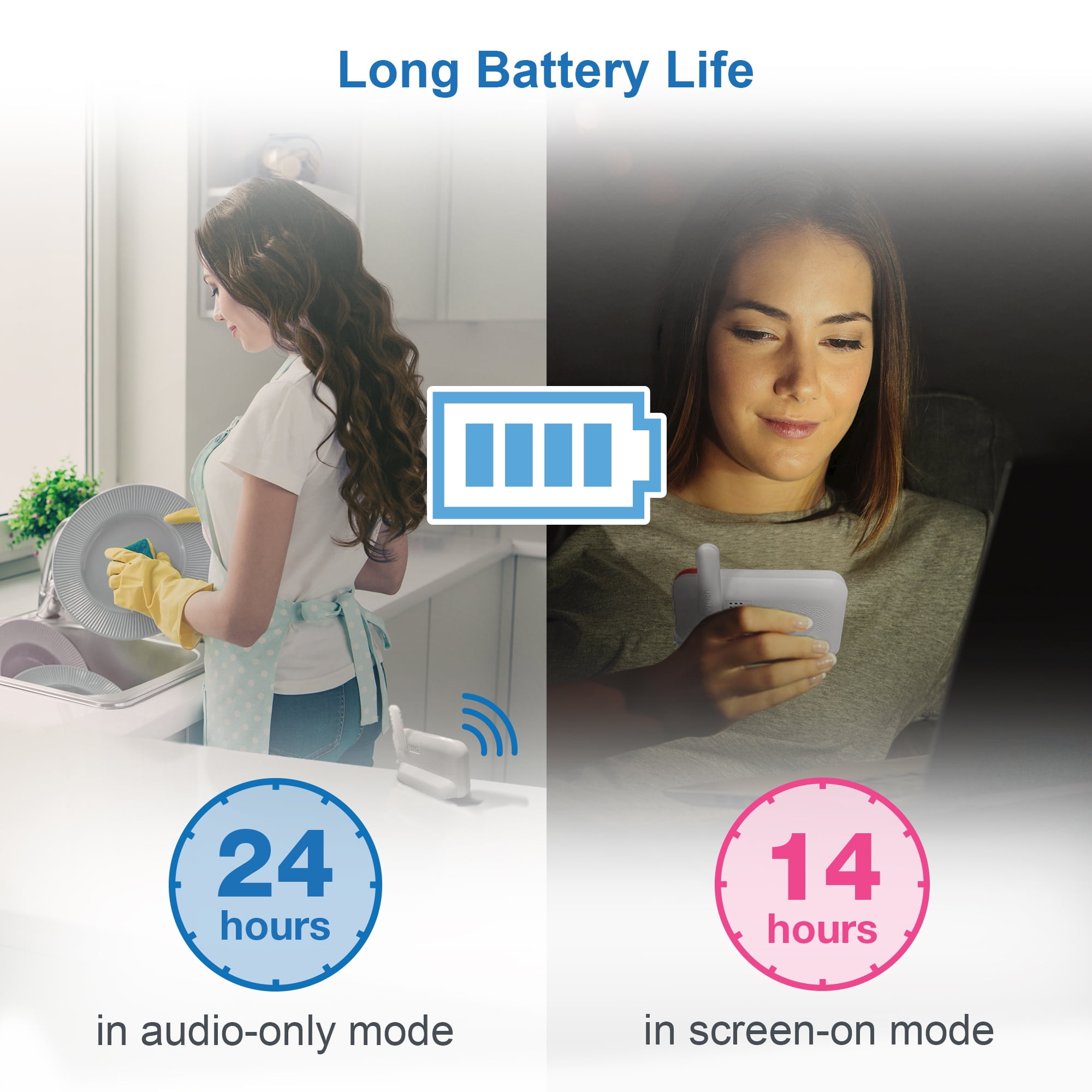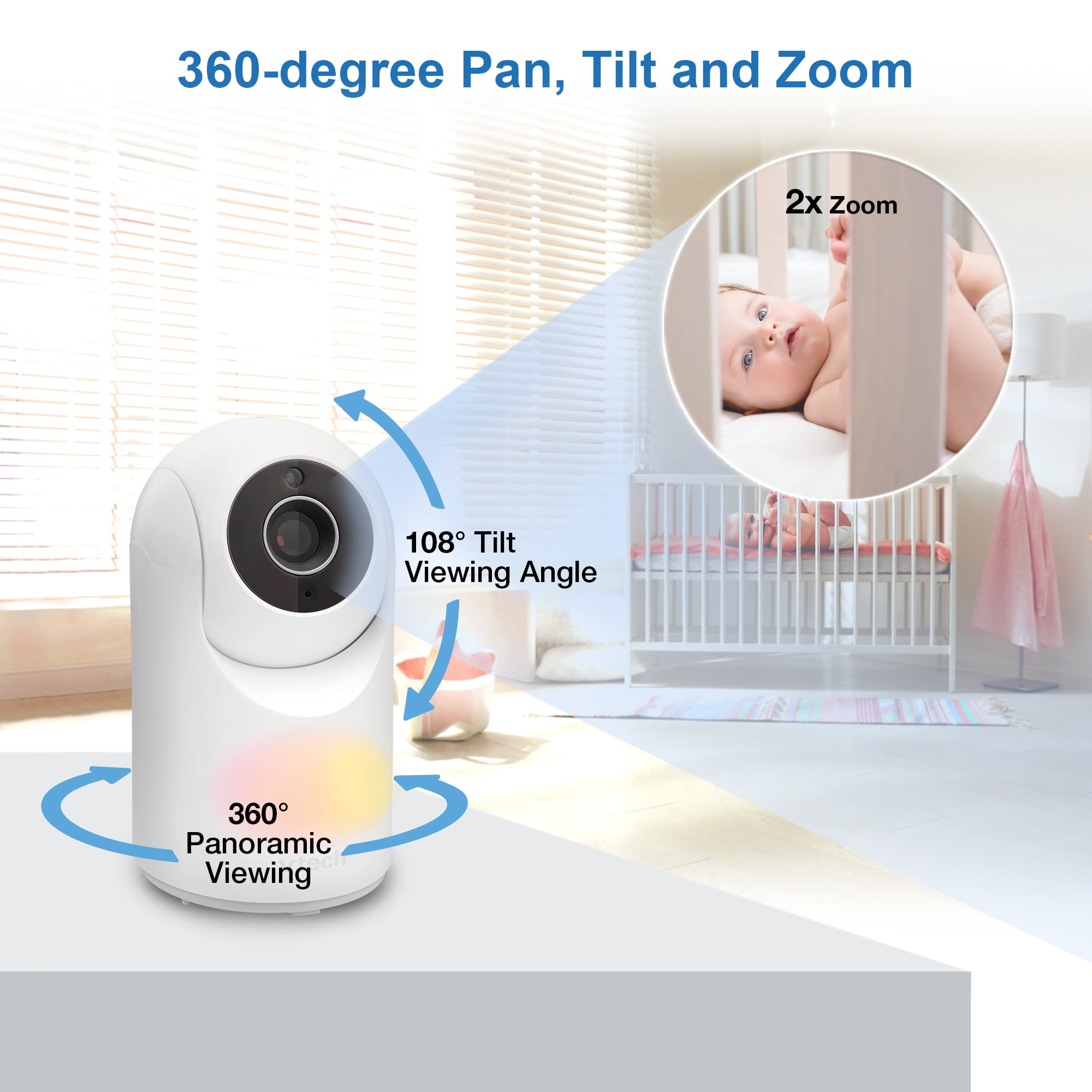 High-Resolution, 3.5-inch color LCD screen – Clearly see every little move right from the parent unit. When you check in on your baby, you’ll feel like you’ve never left the nursery. Pan, tilt and zoom the camera from the parent unit – Watch as your little one moves about. The camera pans up to 270 degrees side-to-side and tilts as many as 25 degrees up and down. Need more detail? The camera even zooms up to 1.3 times Touch adaptive night light – The 7 color night light automatically adjust brightness for ideal lighting. Touch the light icon to control the night light. Soothing sounds and lullabies – Five calming melodies and four soft ambient sounds, including a trickling stream and white noise, help your baby slip into a sweet slumber.