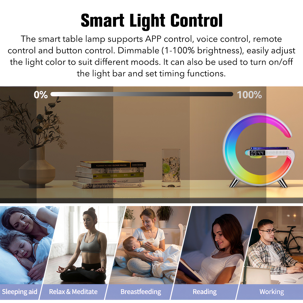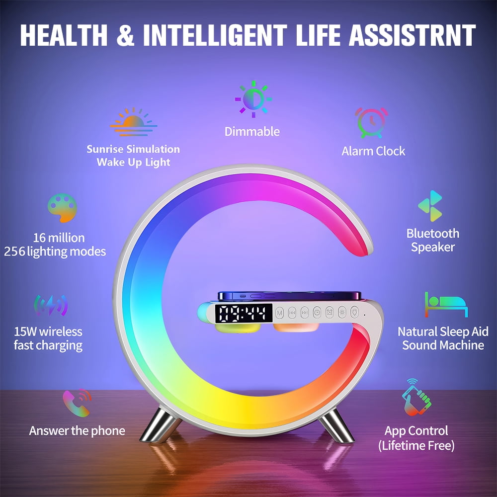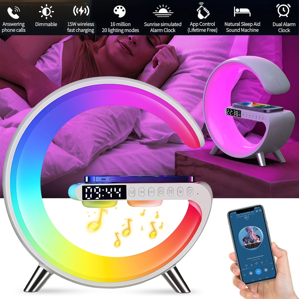 Multifunctional Wireless Charging Atmosphere Light Comfortable Wake-up Mode Smart Light Control Dimmable Mood Light Clock With Fast Charging Station