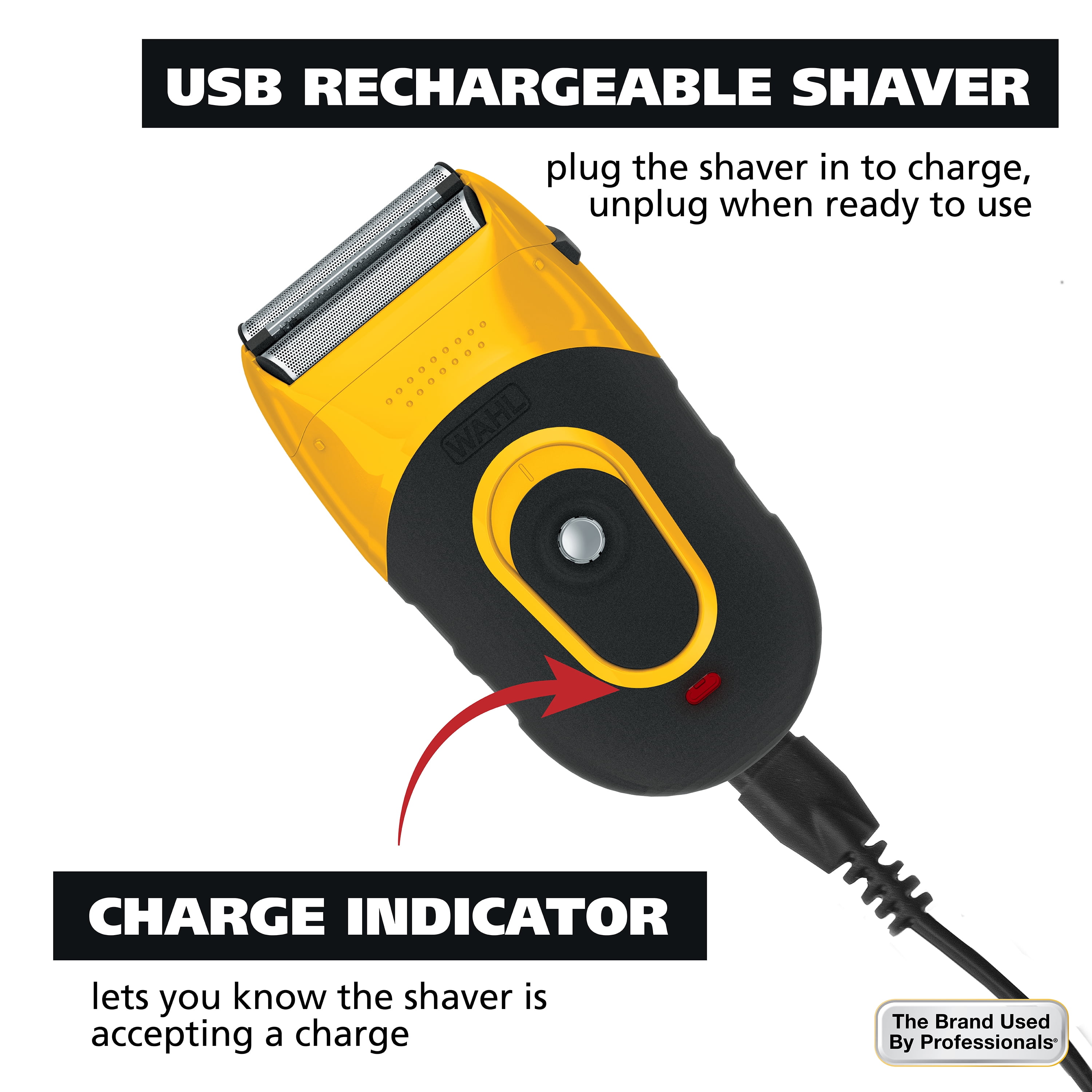 Wahl Life Proof Shaver, Rechargeable Lithium Ion, Compact Flex Foil Shaver & USB Convenience, Men, Yellow – 3023681