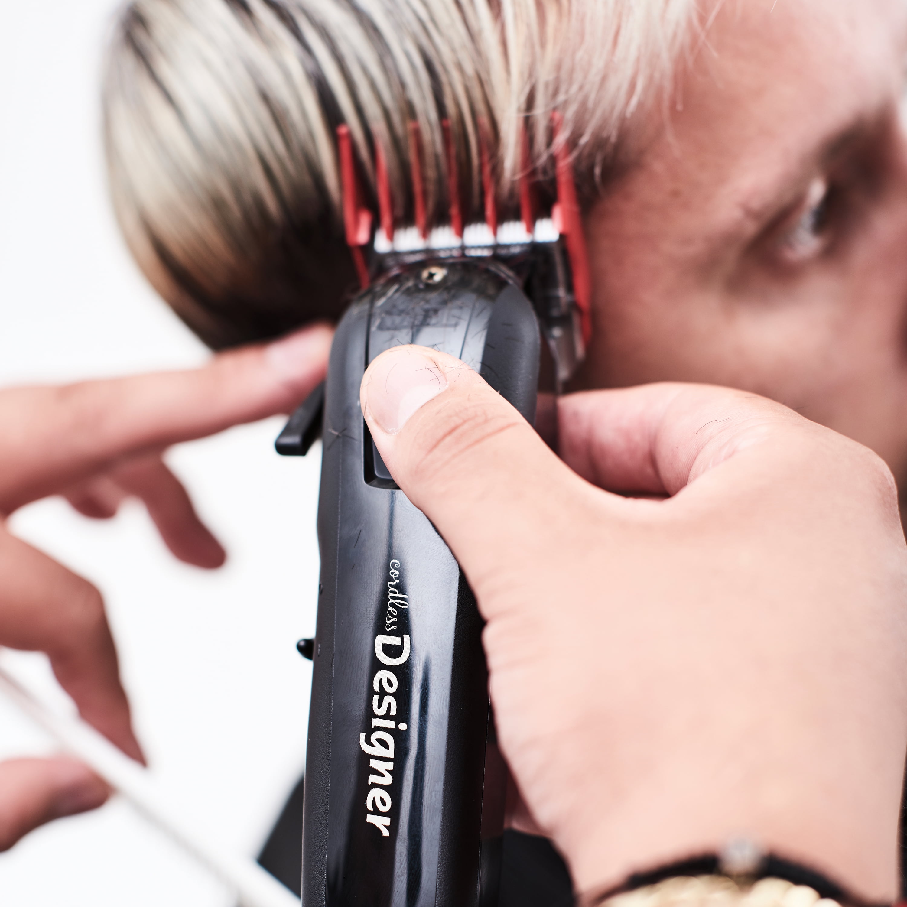 Cut the cord with the Wahl Cordless Designer Clipper! Designed for professional use in barbershops and salons, this clipper is equipped with a powerful rotary motor that cuts through hair wet or dry. The lightweight and ergonomic design ensures comfort and ease of use, fitting securely in the palm of your hand. Powered by a lithium-ion battery, the Cordless Designer offers up to 100 minutes of run time on a single charge. The cord/cordless functionality allows you to use it plugged in if the battery runs low. The clipper also features a taper lever for easy fading and blending, and the high-performance 1005 blade ensures precise and sharp cuts.