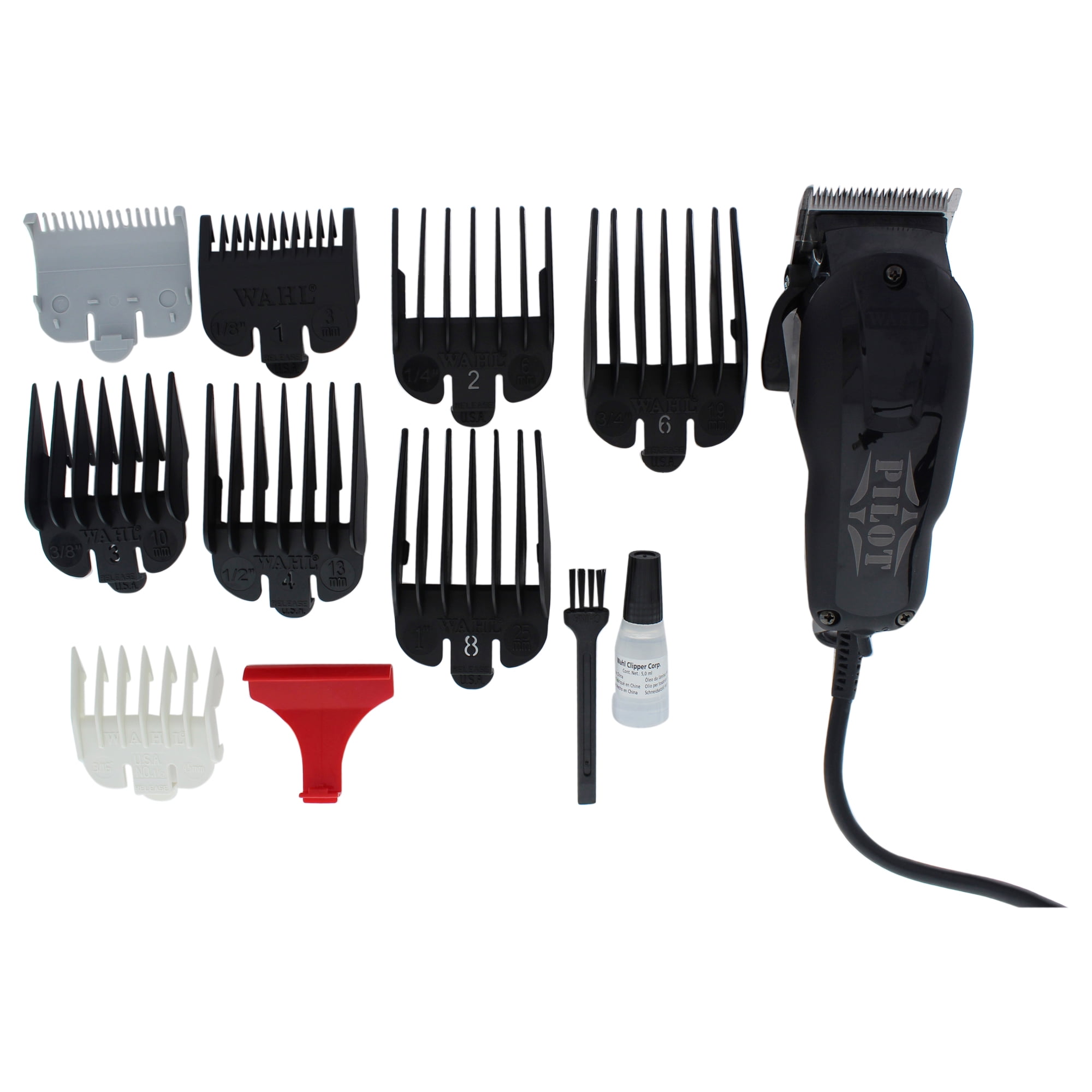 The Wahl Professional Pilot Clipper is designed for barbers and stylists who need a compact yet powerful tool. At 2/3 the size of a normal vibrator clipper, the Pilot fits comfortably in the palm of your hand, offering superior control and maneuverability. It utilizes standard full-size clipper blades and features an adjustable taper lever with built-in notches for precise fading. Equipped with a high-speed rotary motor, this clipper ensures efficient and smooth cutting. The complete kit includes 8 cutting guides (1/16” – 1”), a styling comb, oil, cleaning brush, operating instructions, and a red blade guard.