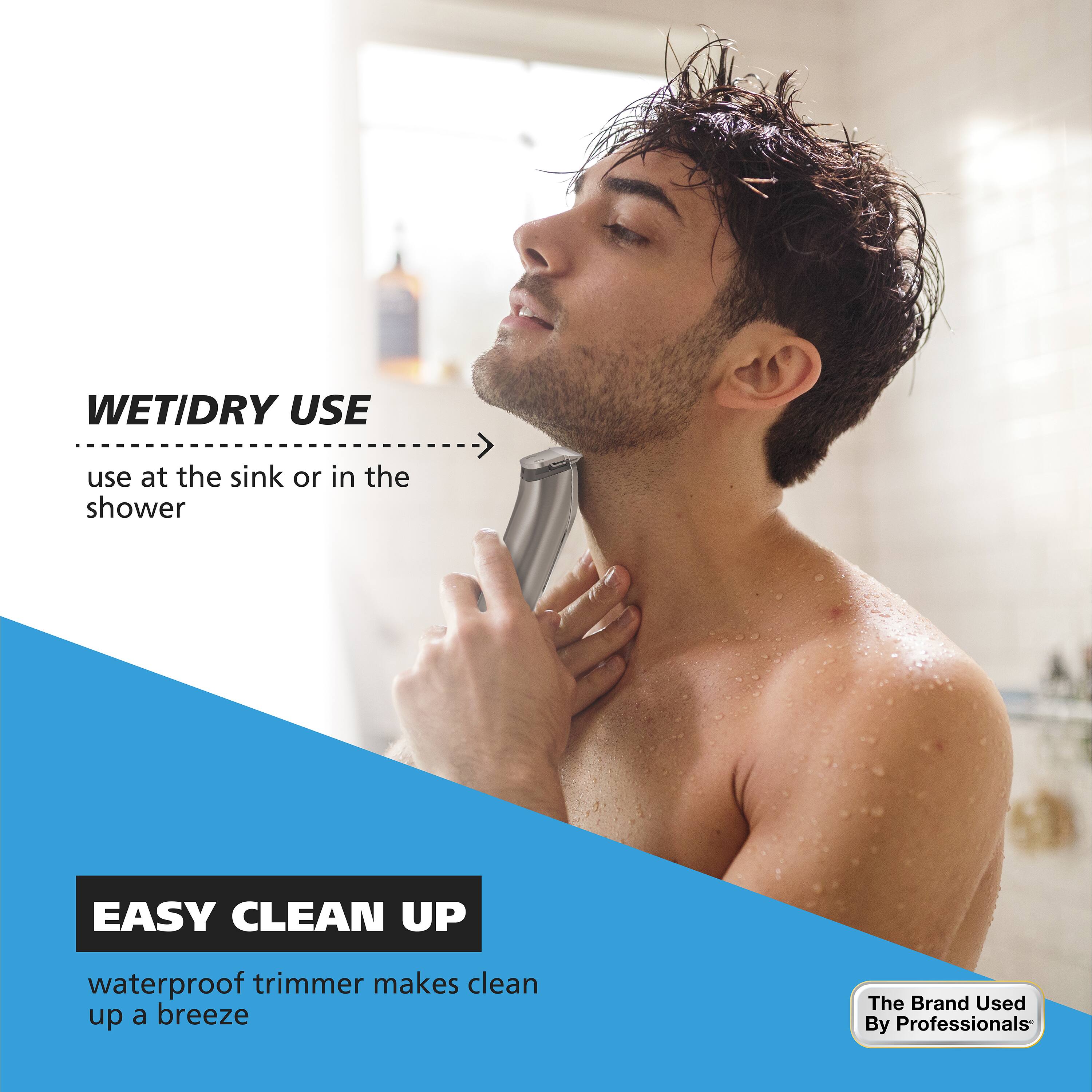The Stainless Steel Lithium-Ion + trimmer is wet/dry allowing you to use at the sink or in the shower. It comes with 3 interchangeable heads that allow you to customize your grooming experience. The Precision T-Blade is great for trimming the face, beard, sideburns, and necklines. The Precision Detailer helps provide touch up trims around the beard, nose, ears, and eyebrows. The Ear/Nose Trimmer head hygienically trims the hard to reach ear and nose areas. Attach any of the 8 individual guide combs to the t-blade trimmer head to evenly trim beard hair between 1/16″-1/2″ or attach the 10-Position adjustable guide comb to achieve cutting lengths between 2mm – 11mm. This trimmer also contains Lithium-Ion + technology that provides a 3.5-hour runtime on an hour charge, a 1 minute quick charge for 3 minutes of use, and a low charge indicator. The built-in travel lock allows you to lock the trimmer, so it doesn’t turn on in your travel bag, preventing the battery from dying on the way to your destination.