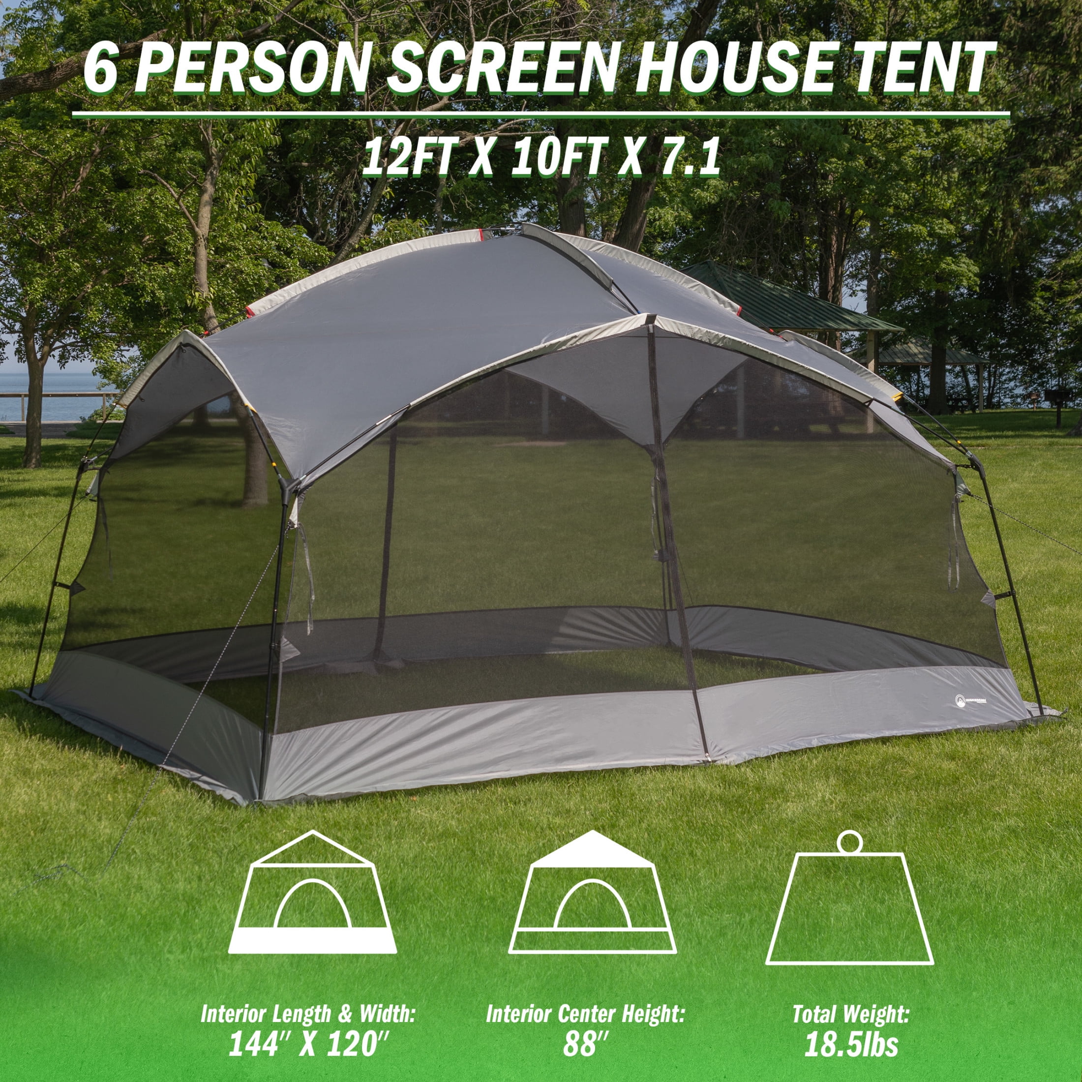 Wakeman Outdoors 12×10 Pop Up Canopy Screen Tent for Camping or Party, Gray