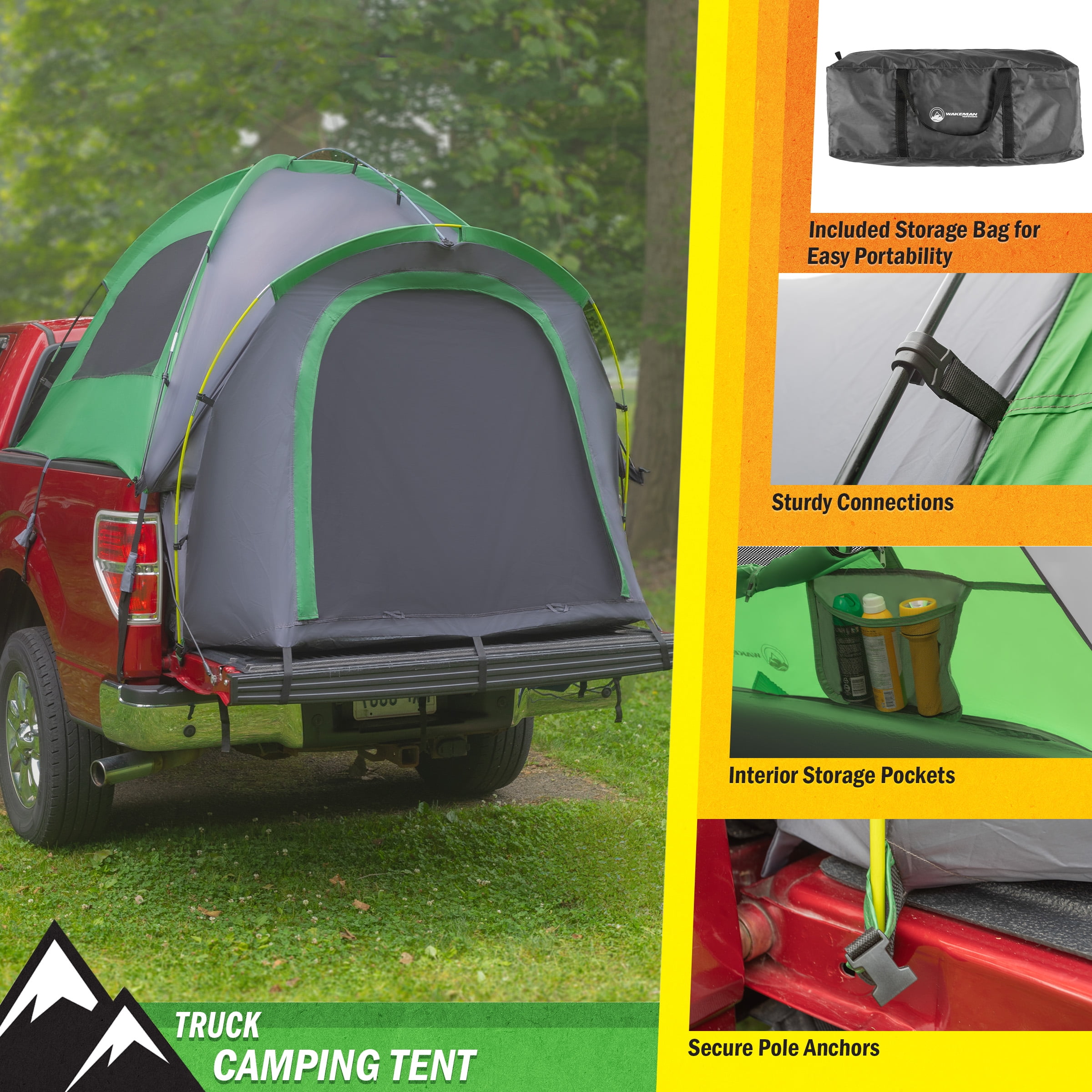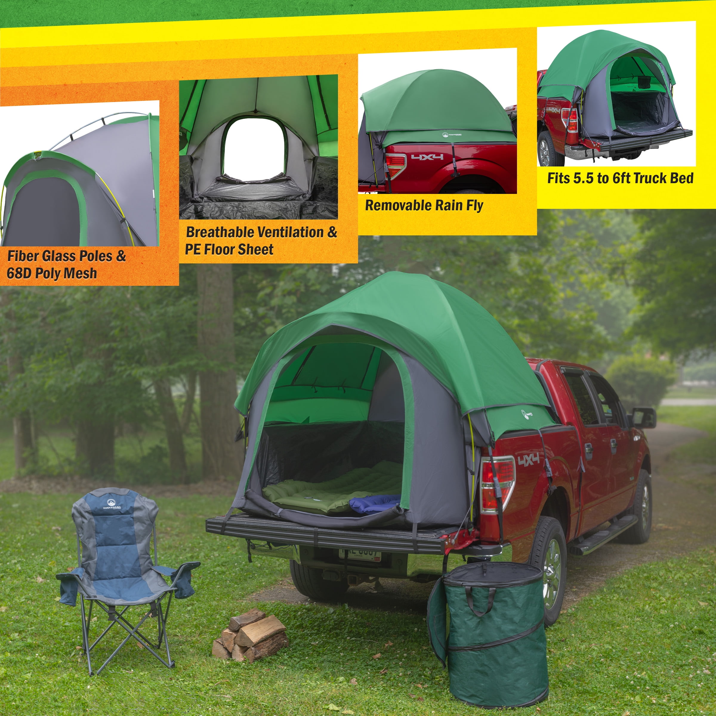 Wakeman Outdoors Water-Resistant Truck Bed Tent for 2-Person, Green, Fits 5.5-6 ft Truck Beds