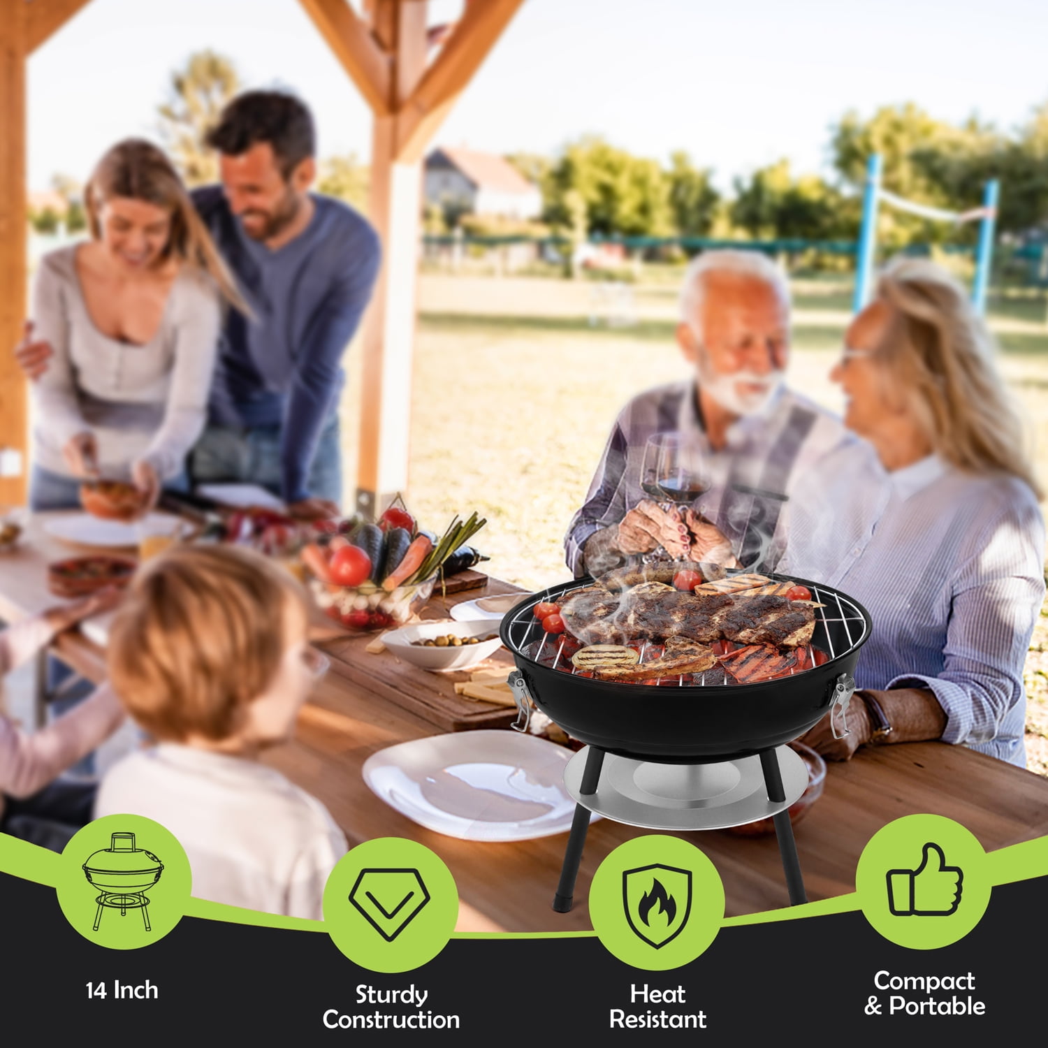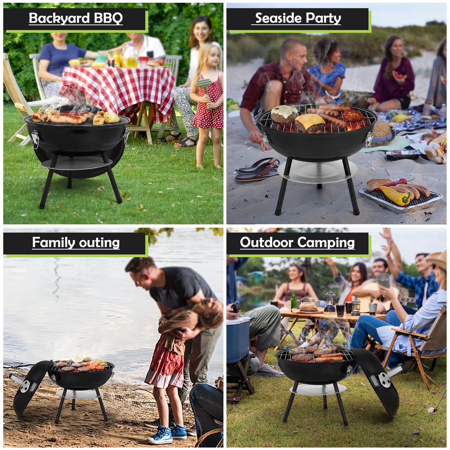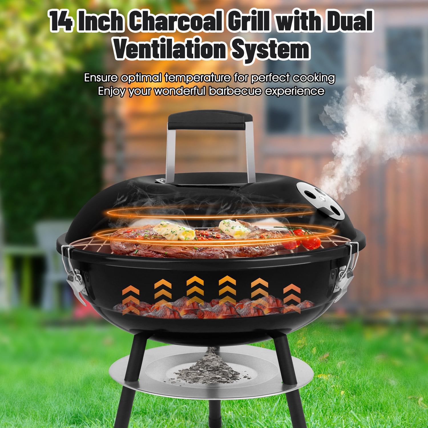 Walchoice 14 inch Portable Charcoal Grill with Black Lid, Small BBQ Grill for Outdoor Cooking/ Backyard Barbecue Party/ Camping, Dual Ventilation System, Plus a Screwdriver